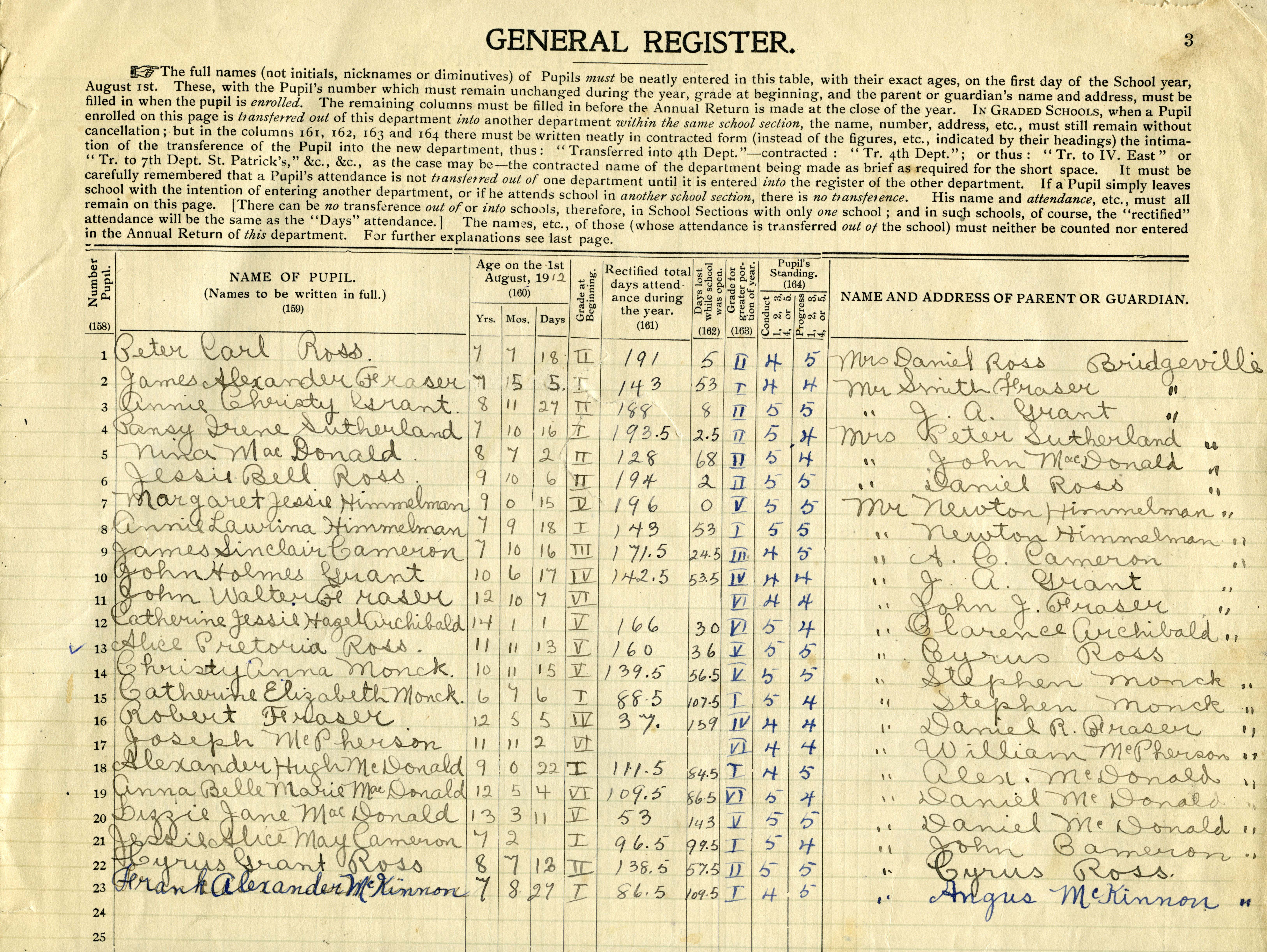 School Register, Bridgeville, 1913