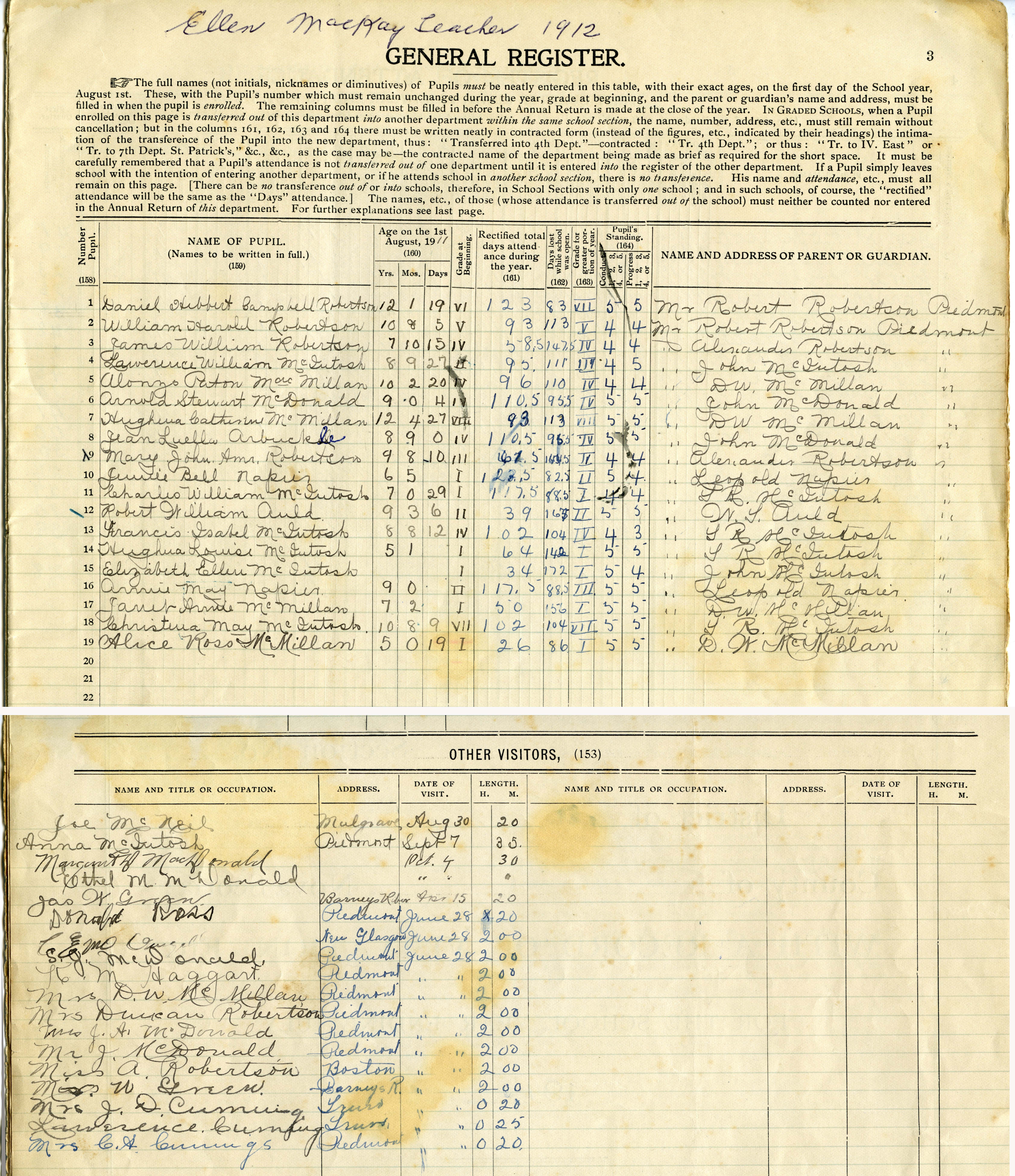 | Tags: | Section 42, East Pictou, Mulgrave, Barneys River, New Glasgow, Boston, Truro, enroll, enrollment, attendance, class, student, students, year, month, day, birthday, record, roll |