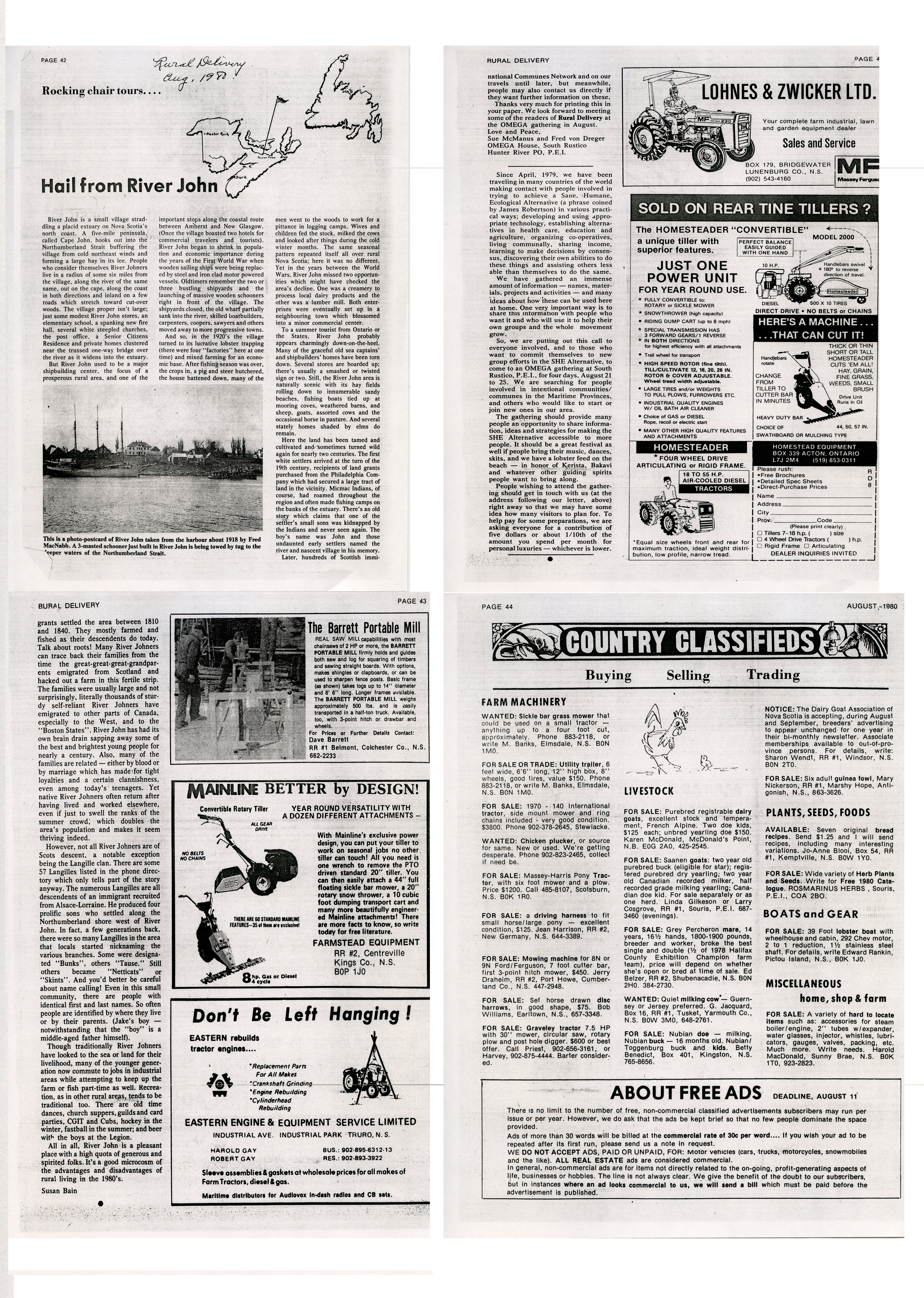 Hail from River John - copy taken from Rural Delivery Aug. 1980 describing River John and speaking about ancestors and descendents. Written by Susan Bain