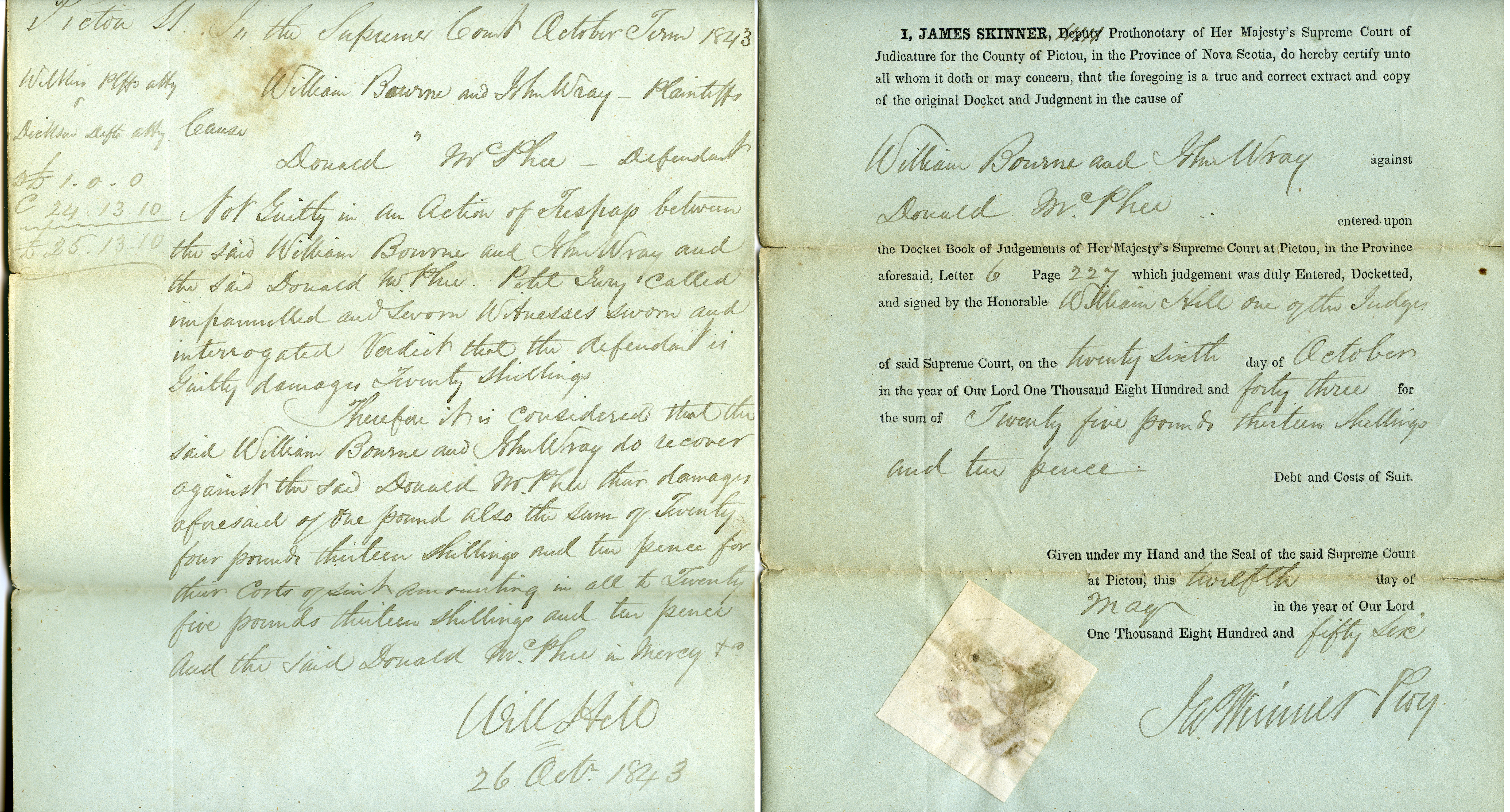 | Tags: | William Bourne, John Wray, Donald McPhee, trespass, Petit Jury, 1843 |
