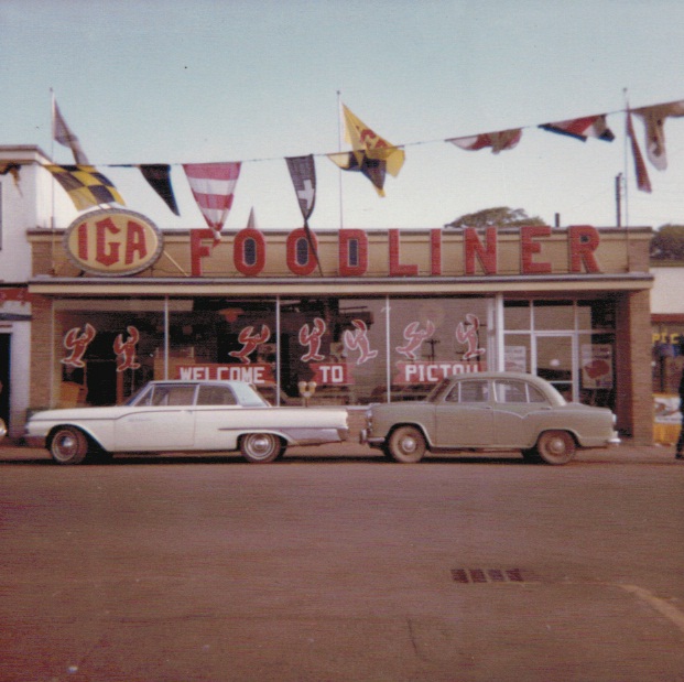 | Tags: | grocery store, Front Street, c 1960, Independent Grocers Alliance, grocer, supermarket, whitewall tire |