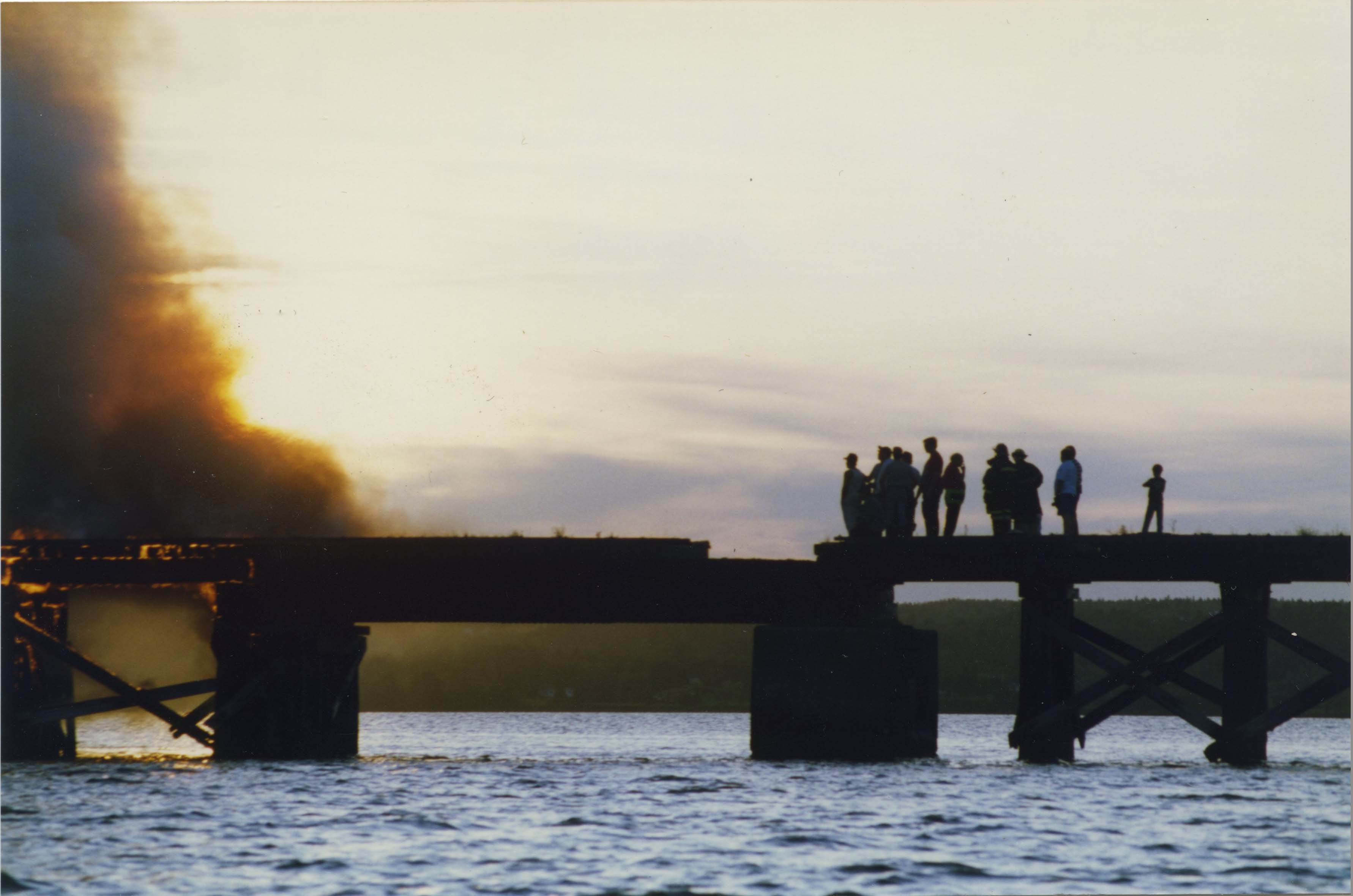 This rail bridge spanned one mile from shore to shore and was completed in 1887.