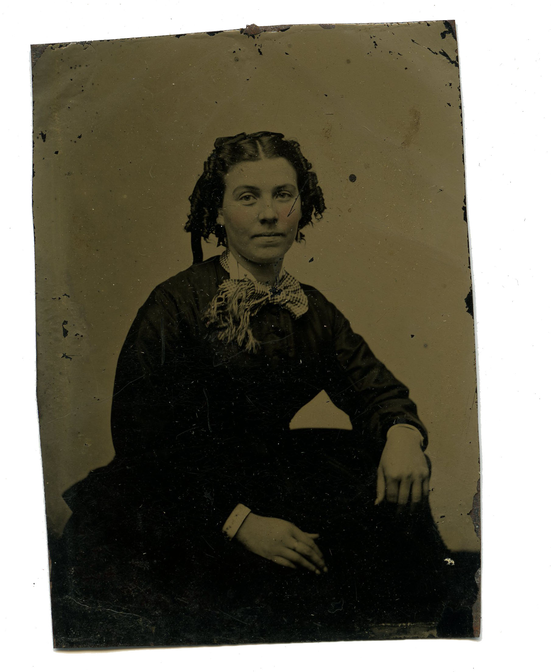 Tintype photo of woman from album connected to the Alexander and Marion Bell Sutherland family of West Branch, River John.