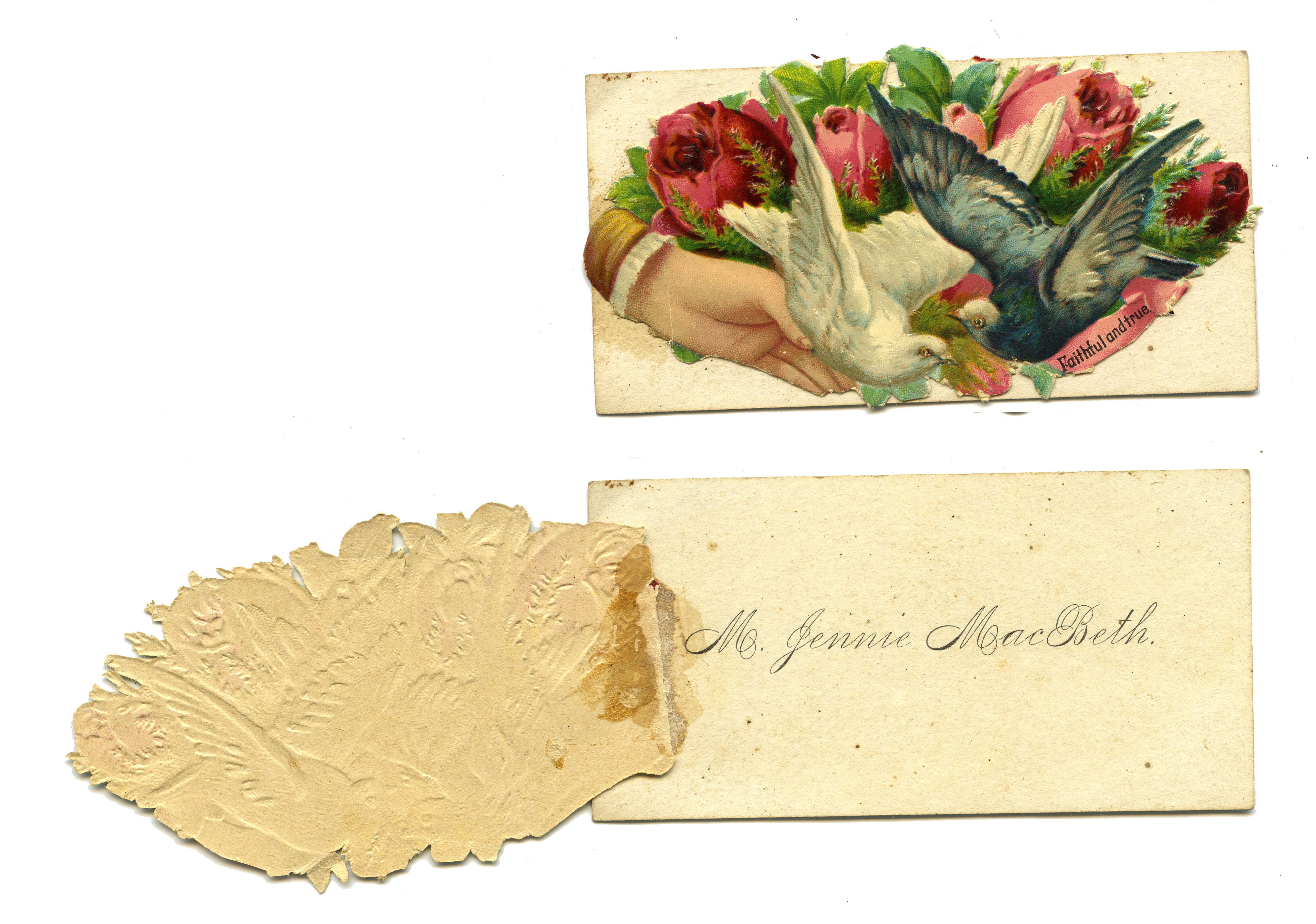 Hidden name calling card from M. Jennie MacBeth. These types of cards were popular in the 1800s.