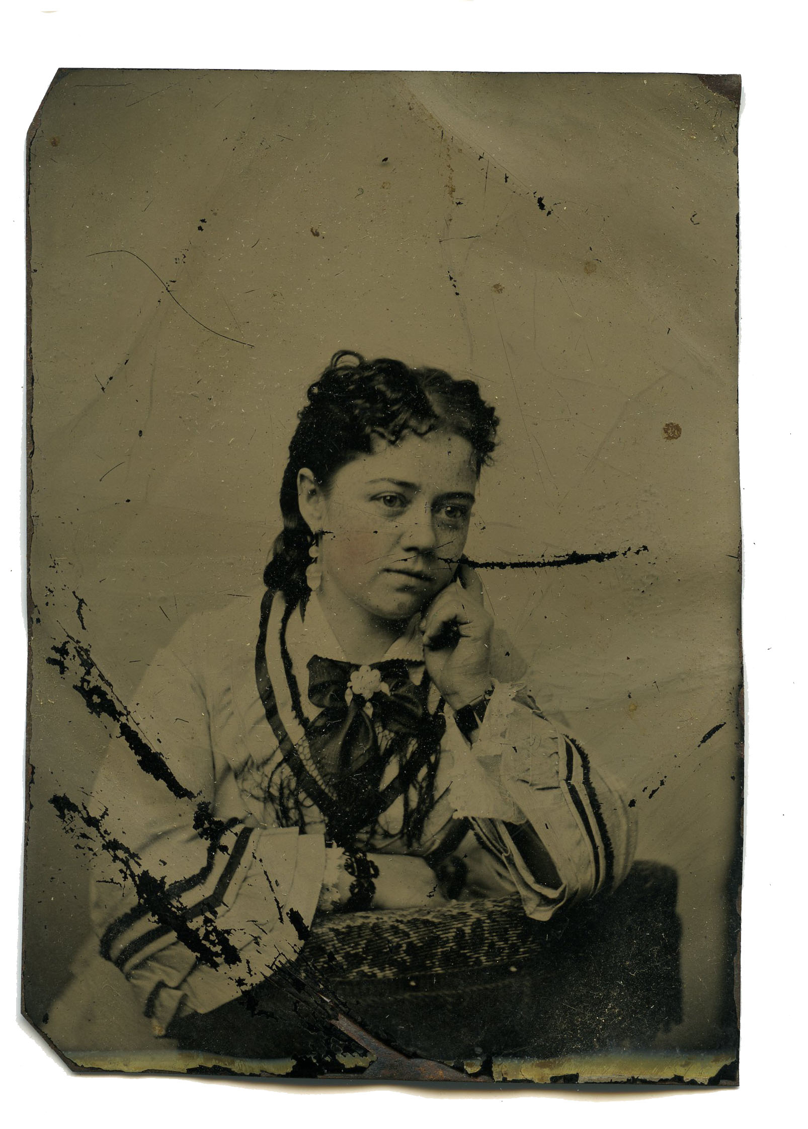 Tintype of woman maybe have been taken c 1870. From album connected to the Alexander and Marion Bell Sutherland family of West Branch, River John.