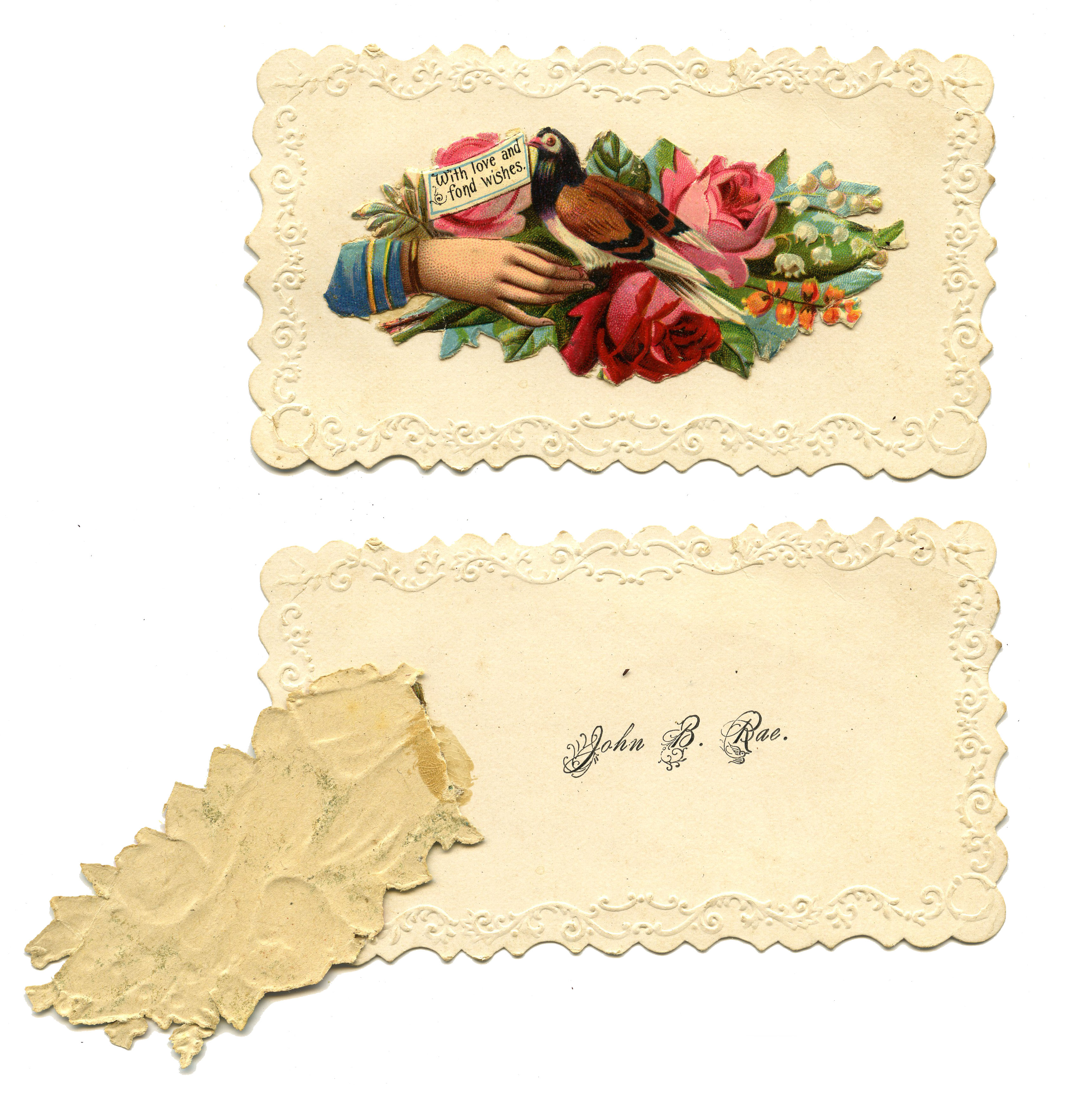 Hidden name calling card from John B. Rae. These cards were popular in the 1800s.