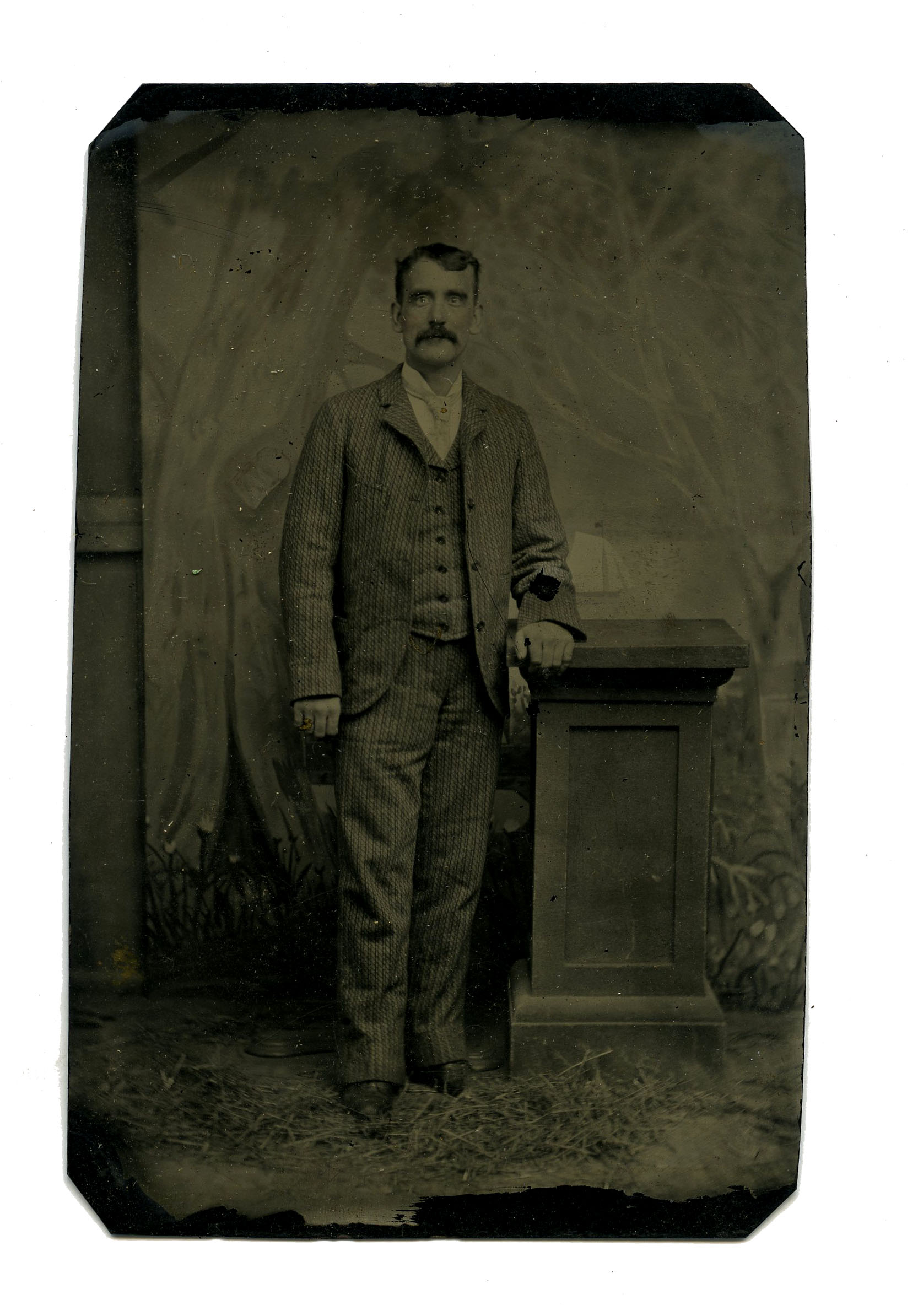 Tintype photo of man probably taken after 1860 to early 1900. It is from an album connected to the Alexander and Marion Bell Sutherland family of West Branch, River John.