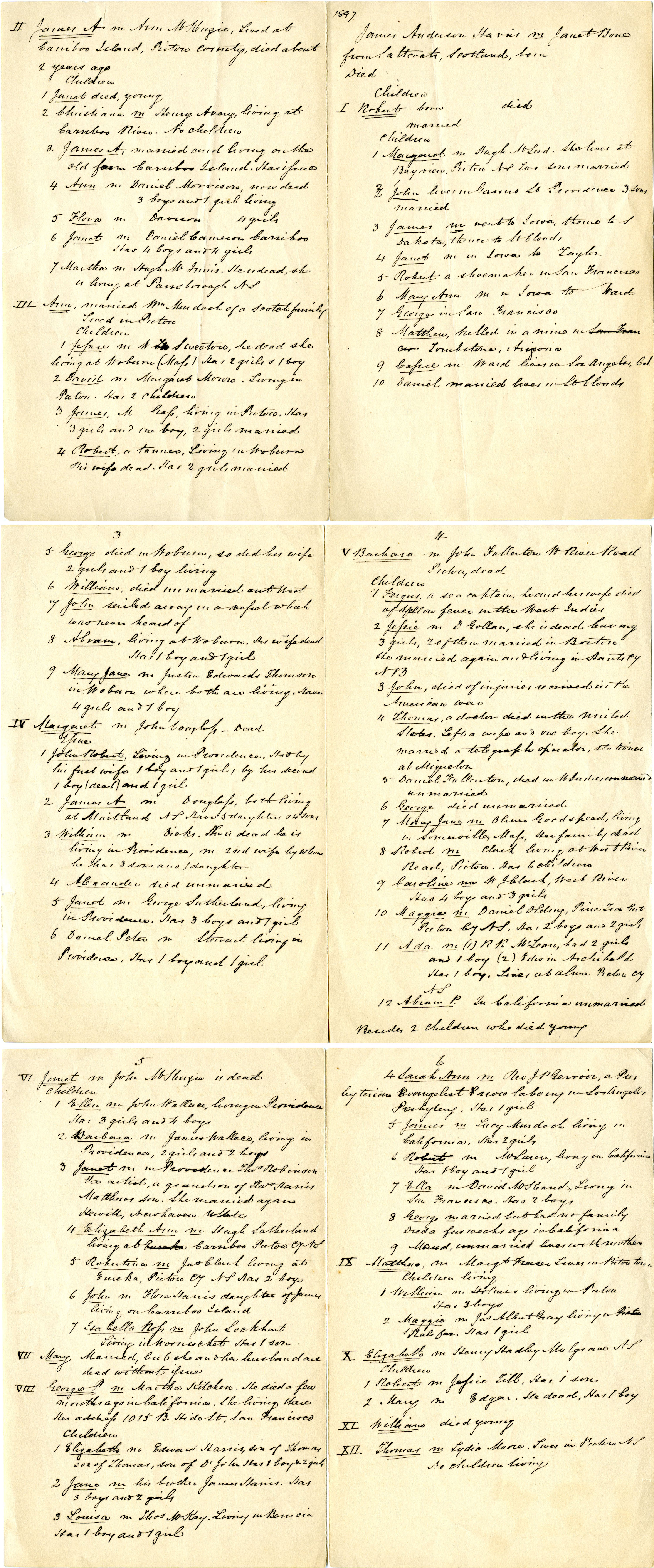 5. Janet m. George Sutherland, living in Providence. Has 3 boys and 1 girl