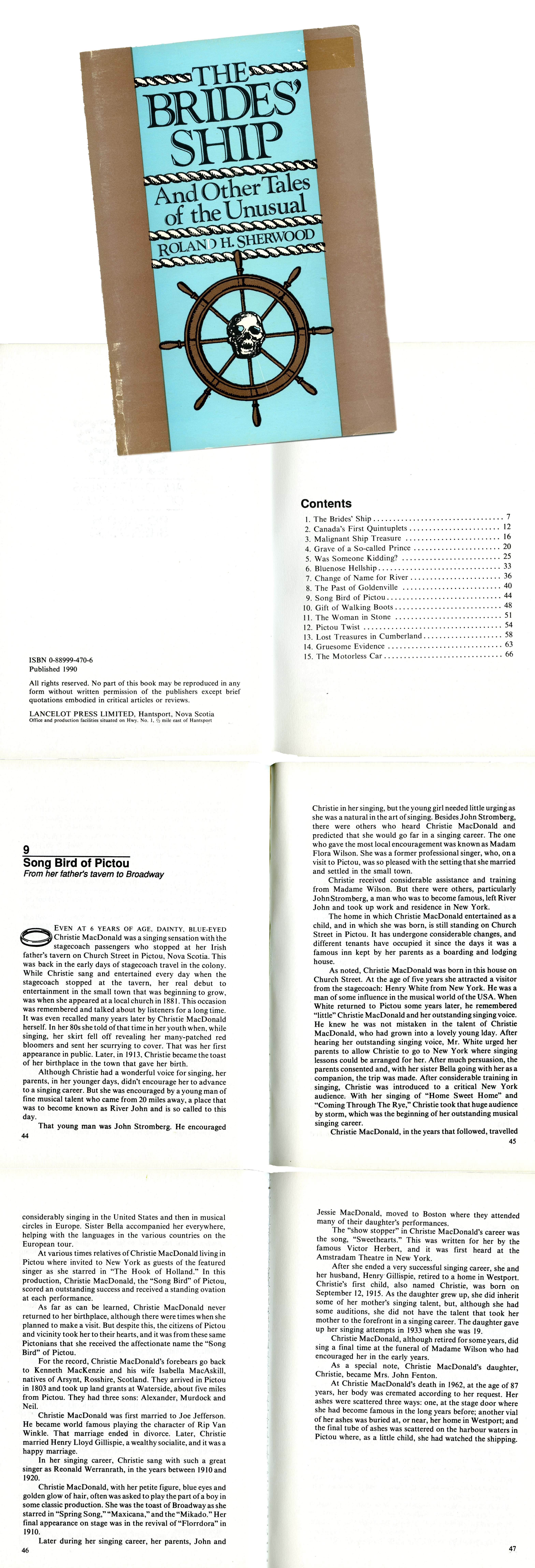 At various times relatives of Christie MacDonald living in Pictou were invited to New York as guests of the featured singer as she starred in "The Hook of Holland." In this production, Christie MacDonald, the "Song Bird" of Pictou, scored an outstanding success and received a standing ovation at each performance.