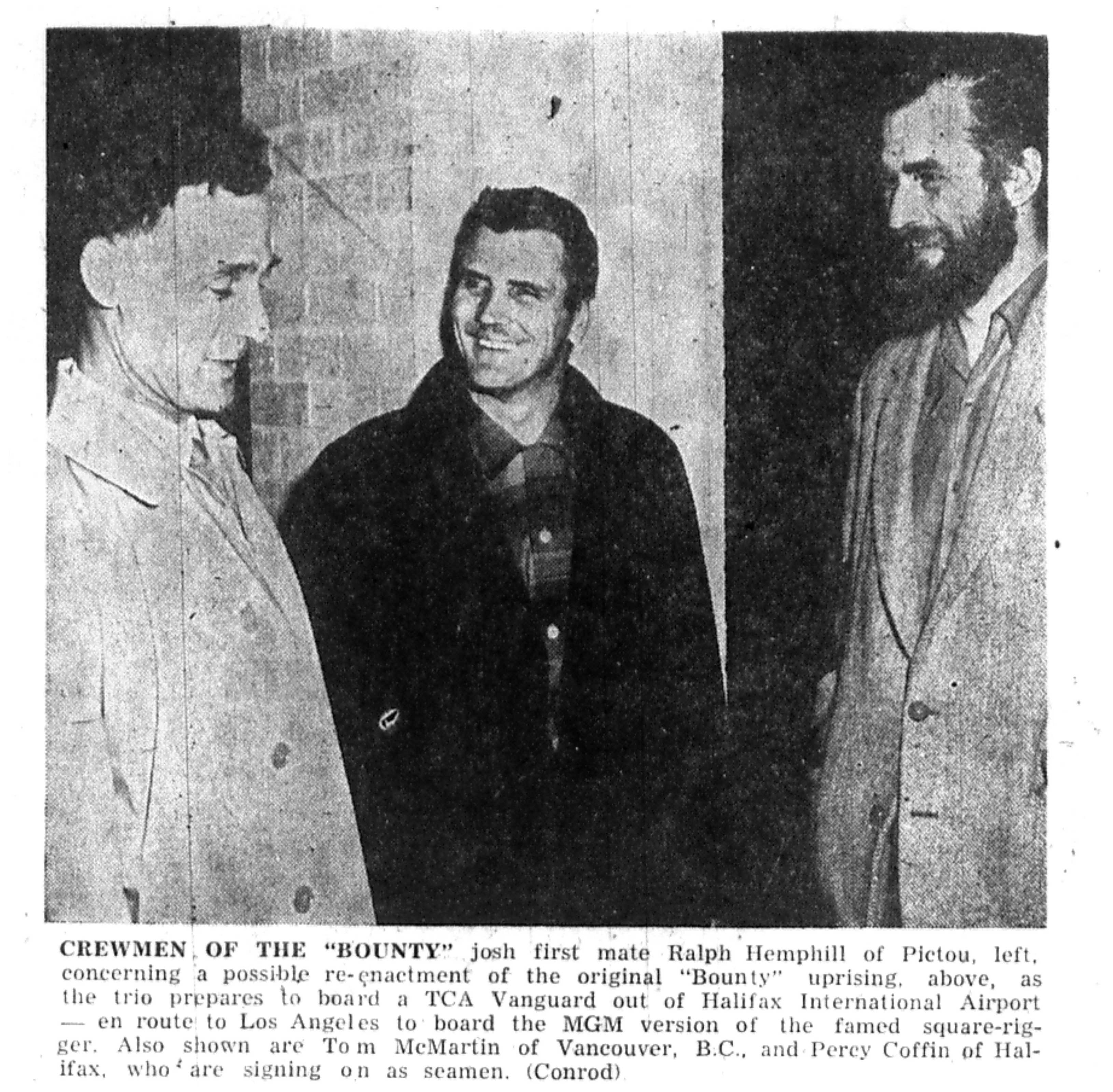 Photo and caption about crewmen of the Bounty from the May 24th, 1962 edition of the Pictou Advocate. Ralph Hemphill of Pictou was one of the men.