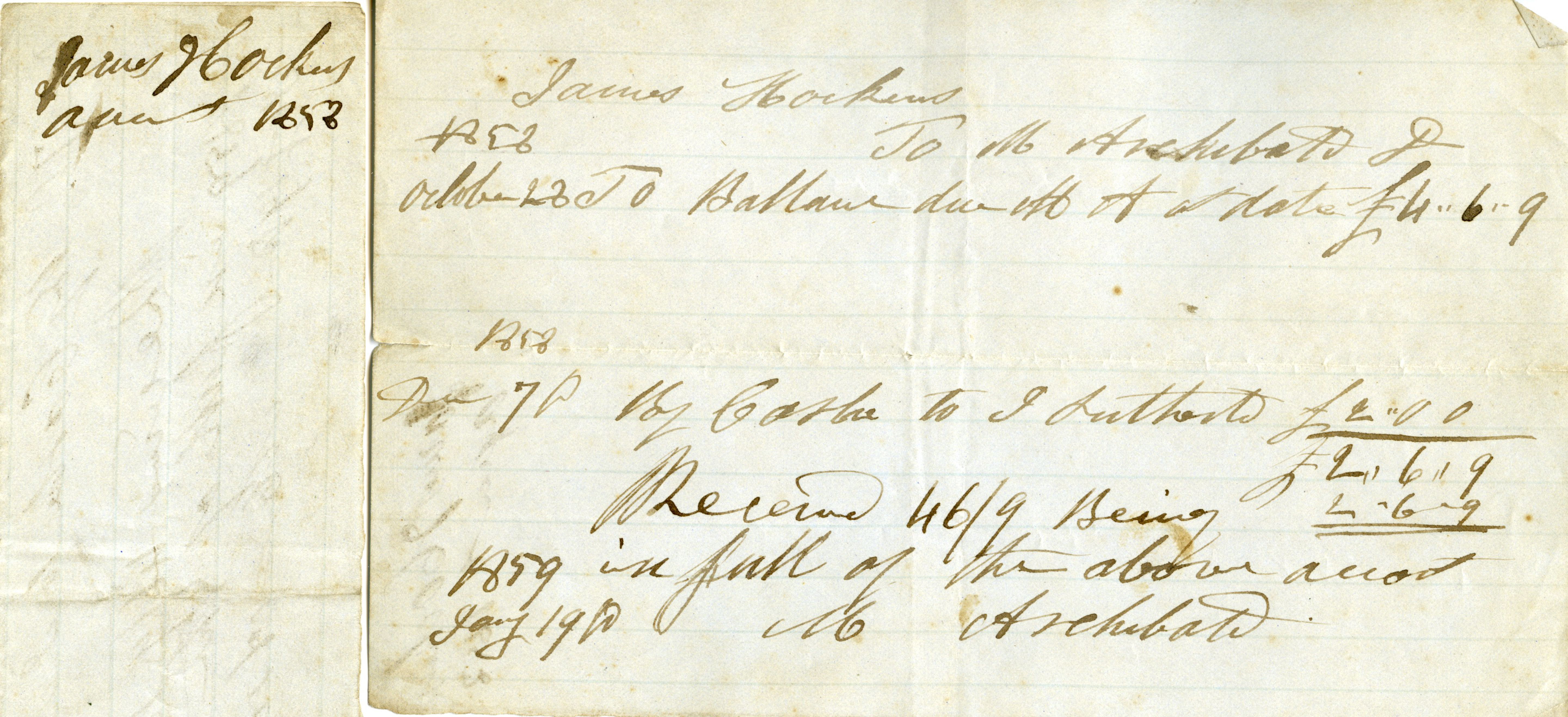| Tags: | MacLeod Papers, MacLeod, McLeod, James Hawkins, M. Archibald, receipt |