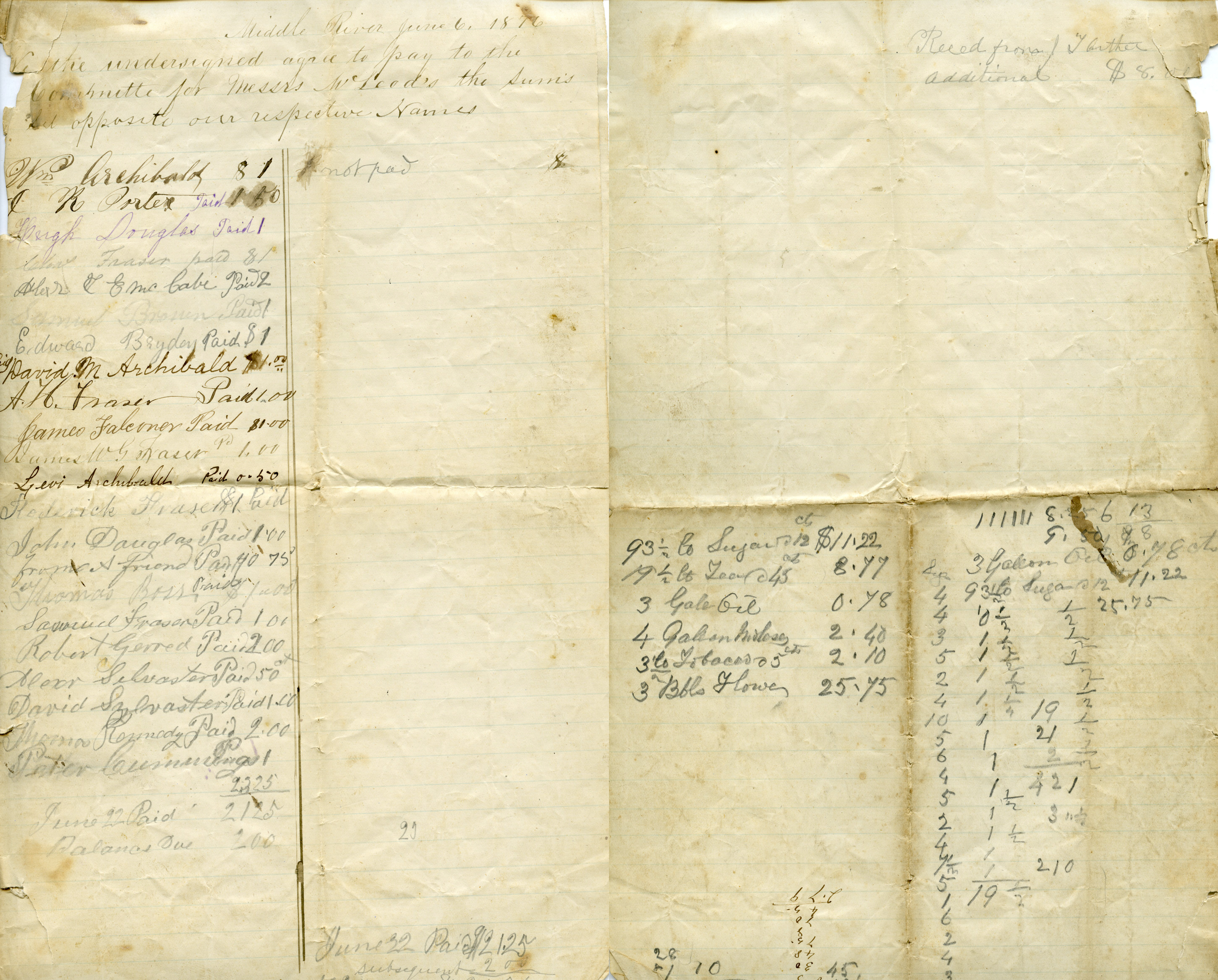 | Tags: | MacLeod Papers, MacLeod, McLeod, subscription, Middle River, Daniel McLeod, Ebenezer McLeod, William Archibald, J.R. Porter, Hugh Douglas, Charles Fraser, Alexander McCabe, E. McCabe, Samuel Brown, Edward Bryden, David M. Archibald, A.H. Fraser, James Falconer, James W.G. Fraser, Levi Archibald, Roderick Fraser, John Douglas, Thomas Ross, Samuel Fraser, Robert Gerred, Alexander Silvaster, Thomas Kennedy, Peter Cumming, T. Arthur |