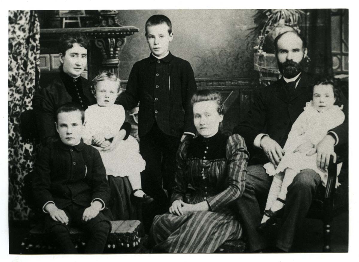 From left to right: Martha, Edward (on stool), John (on Marthas lap), Robert Gordon Jr. (standing), Georgina MacKenzie (sitting centre), Robert Gordon Sr., and Elinor Hope (sitting on Roberts lap).