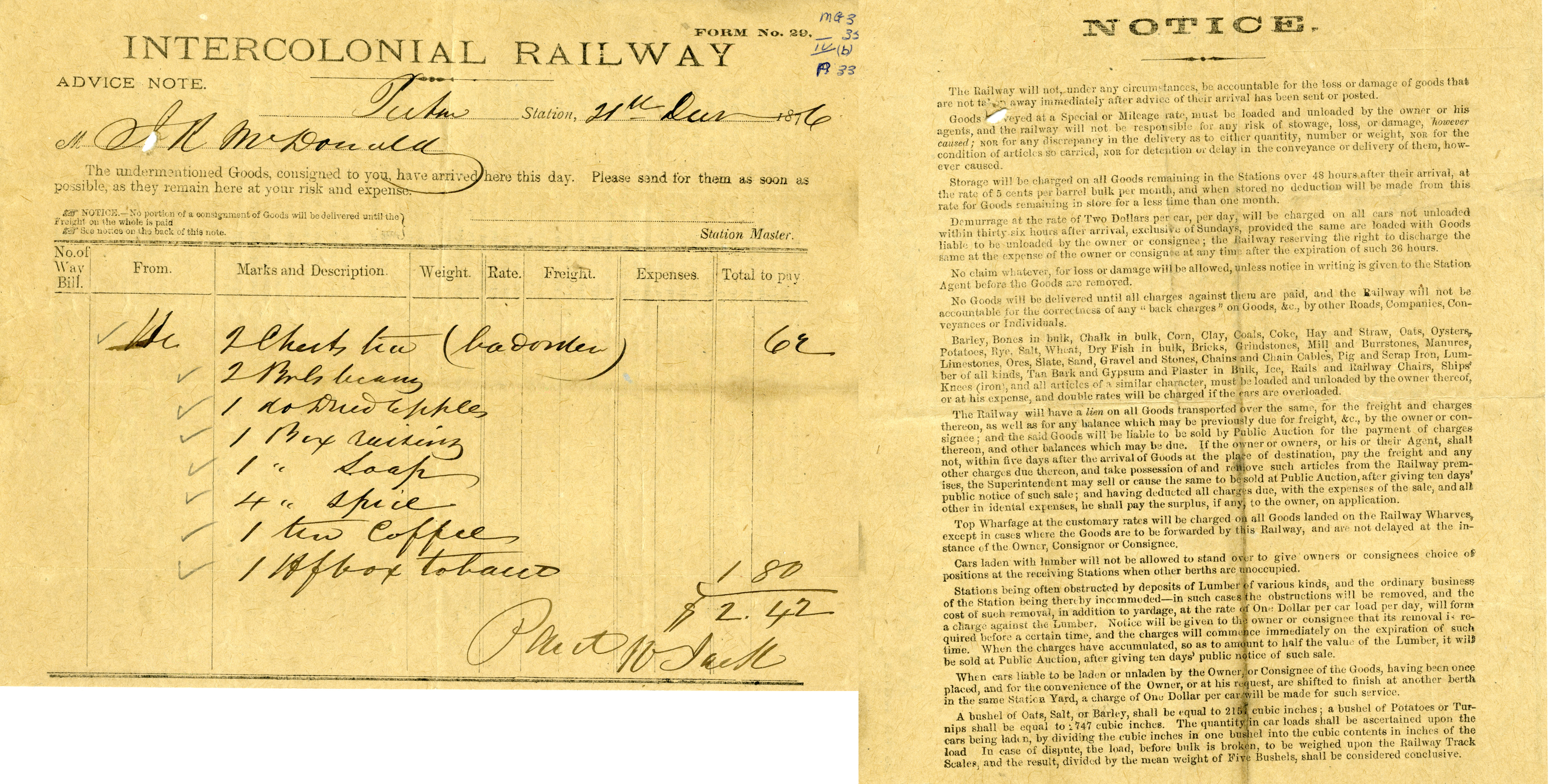 | Tags: | John R. McDonald, Pictou, freight, Intercolonial Railway, railway, advice note, ICR |