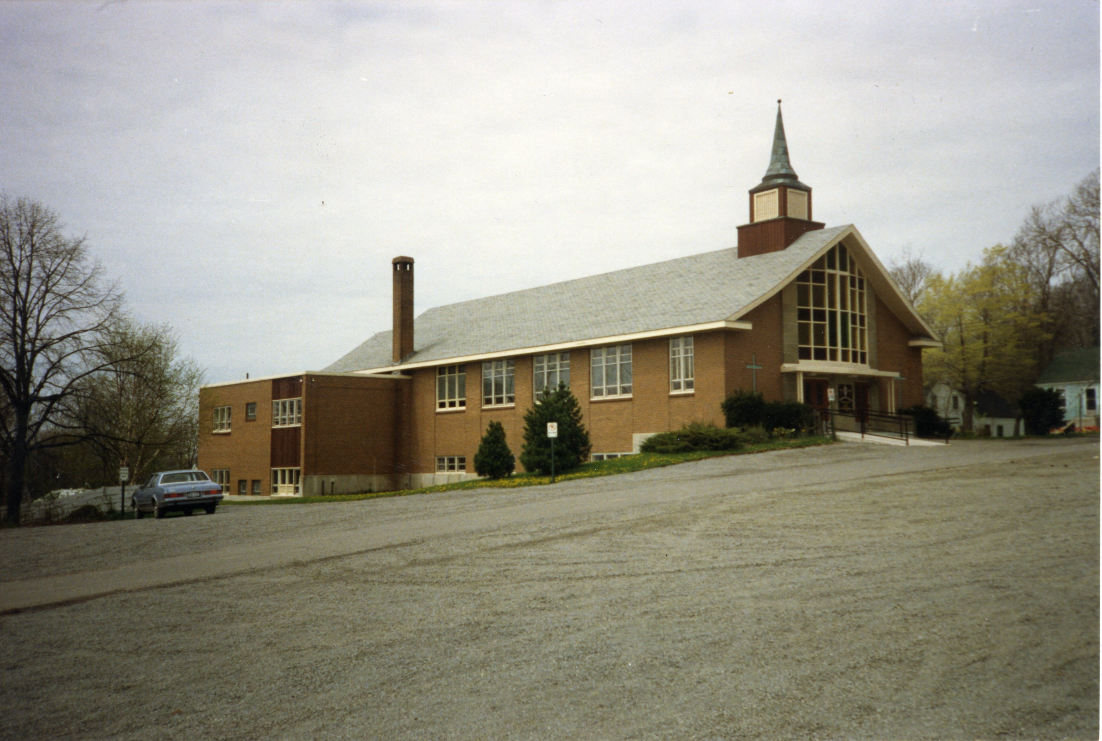 Photo of Pictou United Church on James Street, Pictou, before the current roof was installed.