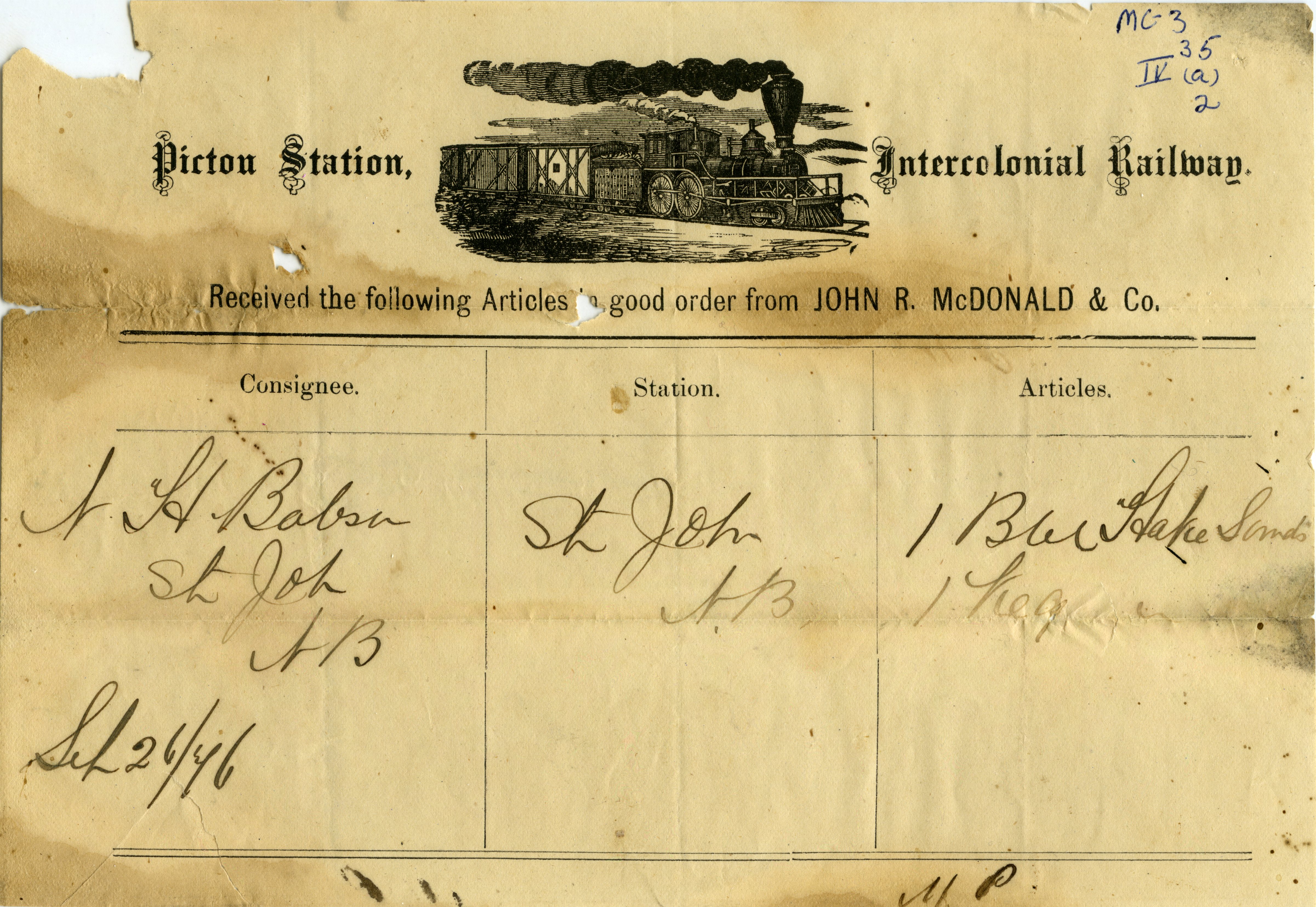 | Tags: | John R. McDonald, ICR, Pictou, Intercolonial Railway, railway, freight, notice |