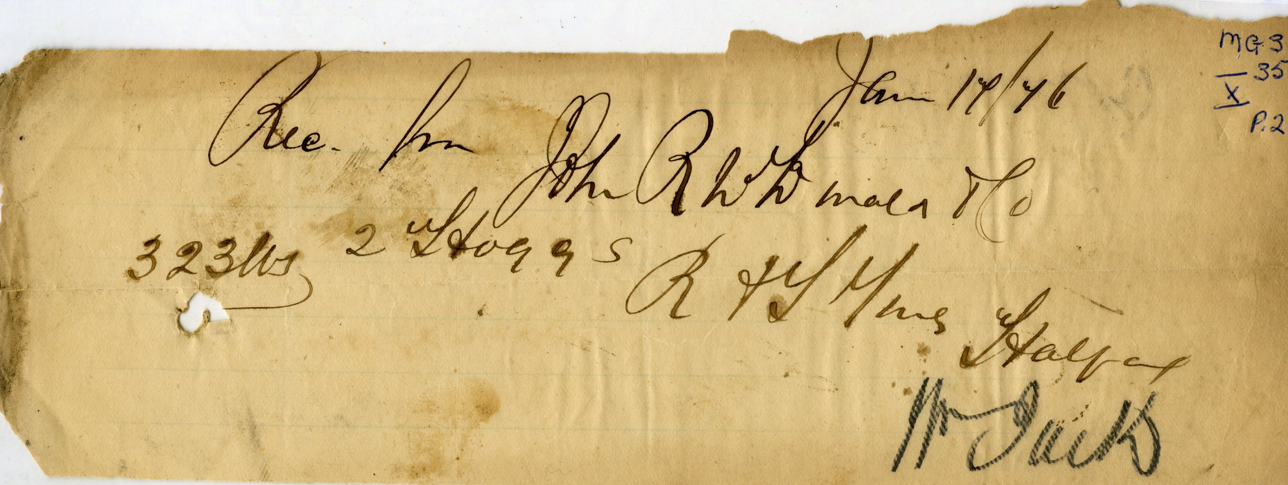 Received from John R. McDonald & Co.