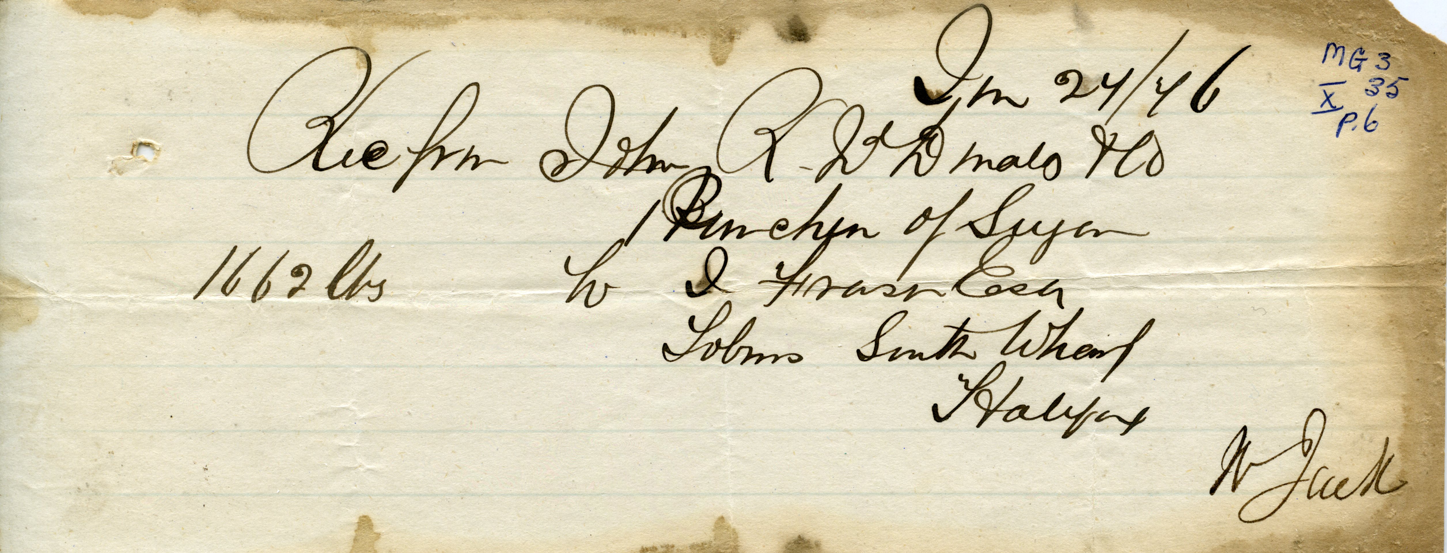 | Tags: | John R. McDonald, Pictou, Halifax, W.I. Fraser, note |