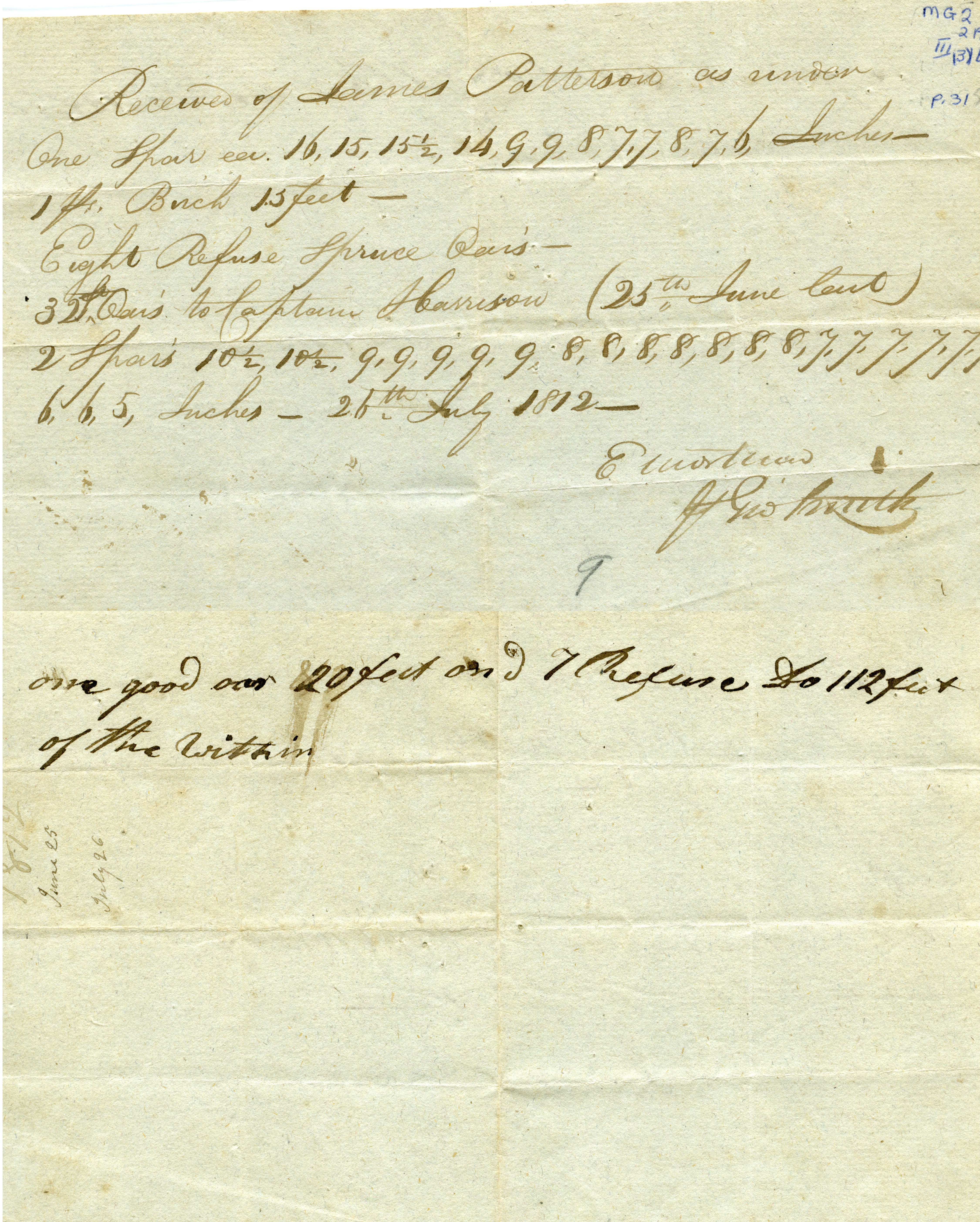 | Tags: | Patterson Papers, James Patterson, Edward Mortimer, timber, receipt, note |