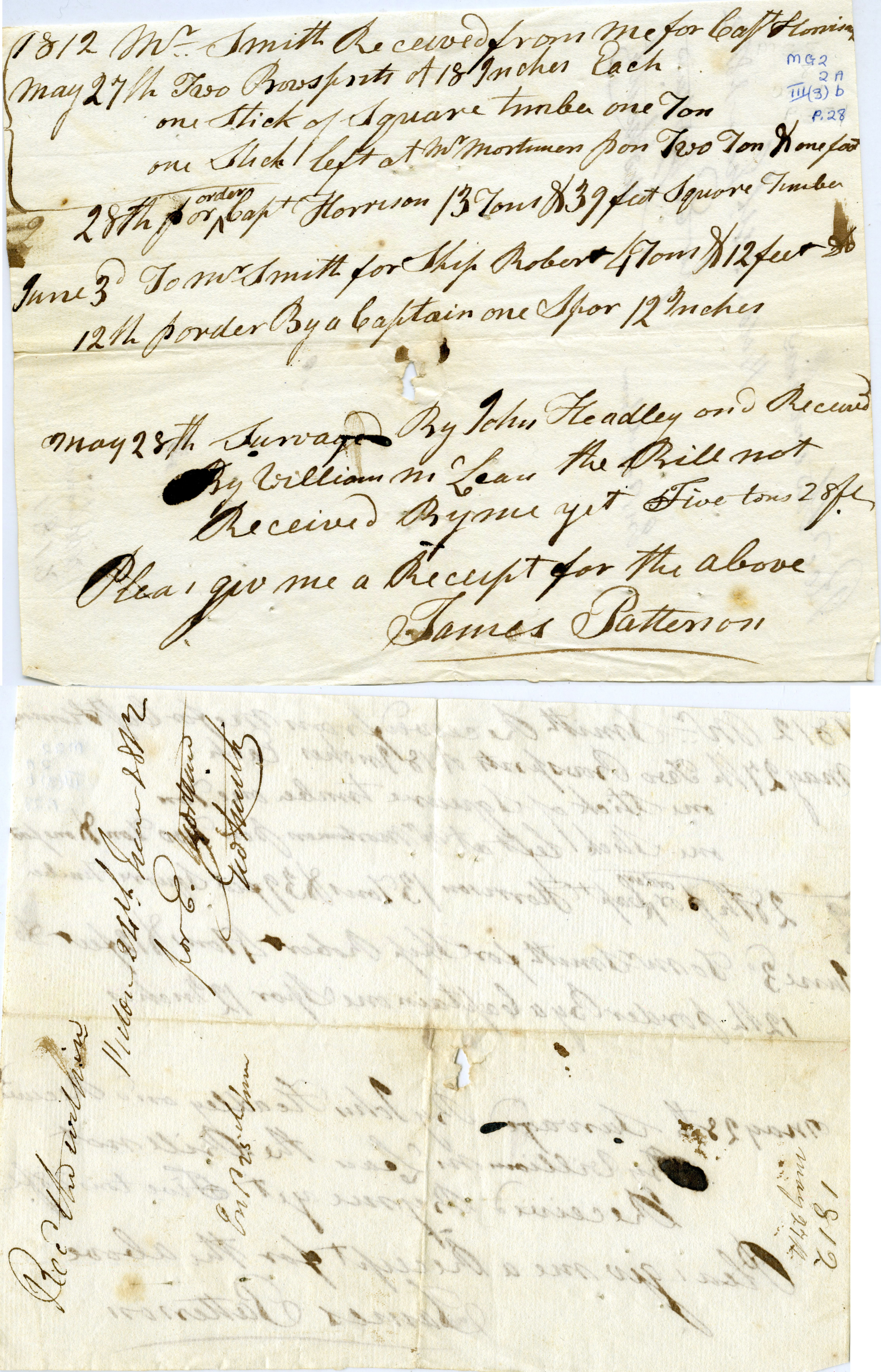 | Tags: | Patterson Papers, George Smith, Edward Mortimer, James Patterson, note, receipt |