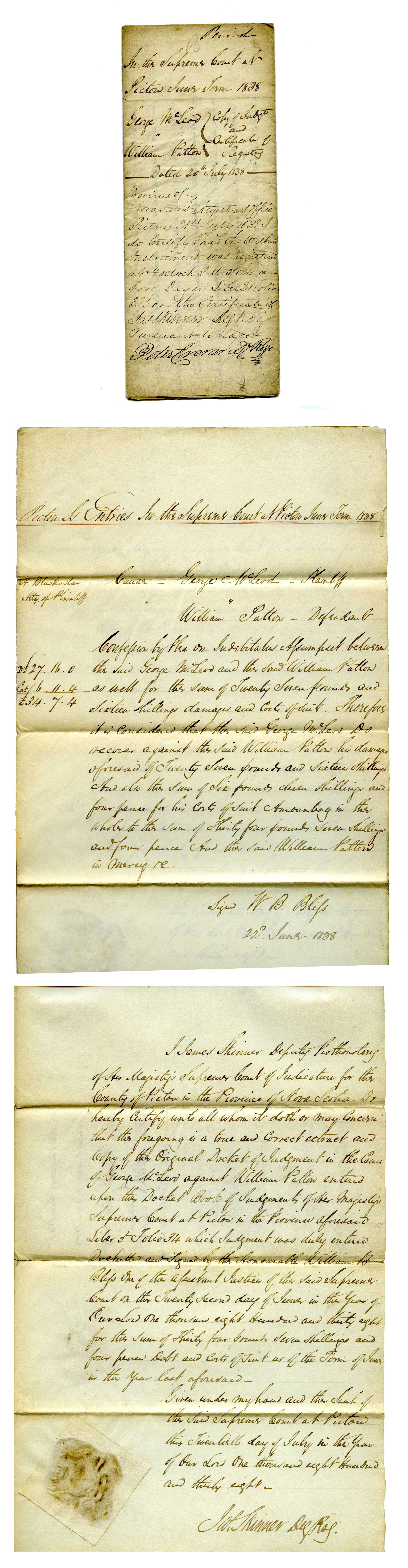 Given under my hand and the Seal of the said Supreme Court at Pictou this Twentieth day of July in the year of our Lord one thousand eight hundred and thirty eight