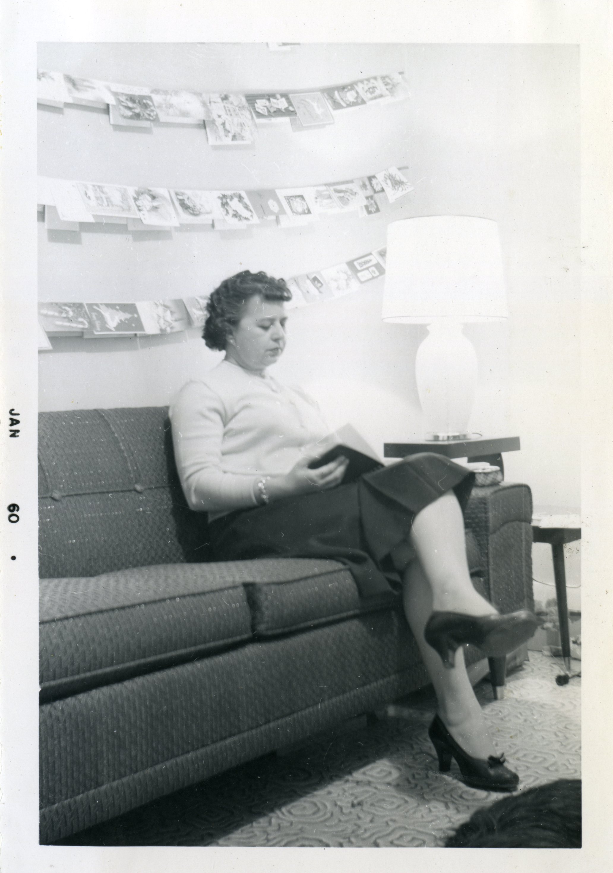 Bea MacIsaac at home during Christmas time 1959