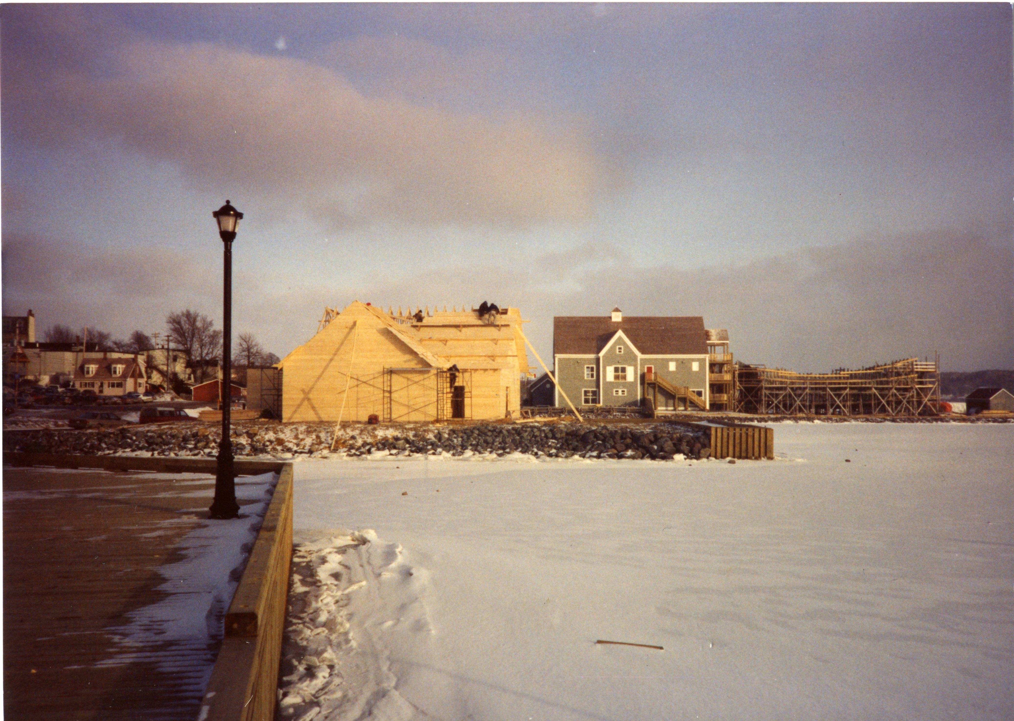 Construction of the present building of the Settlers Salt Water Cafe in Pictou, January 1993.