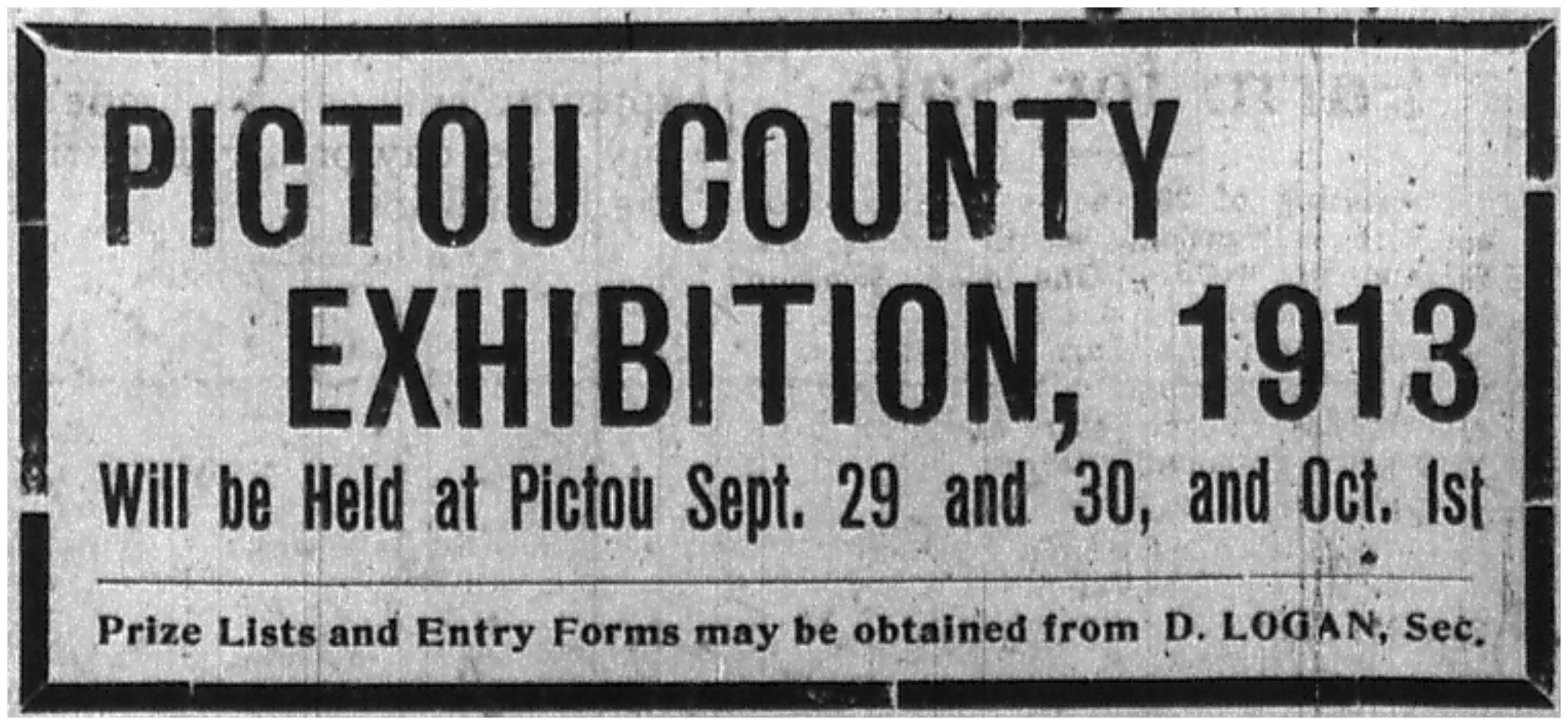 | Tags: | Pictou Advocate, advertisement, Pictou County Exhibition, exhibition, 1913, D. Logan |