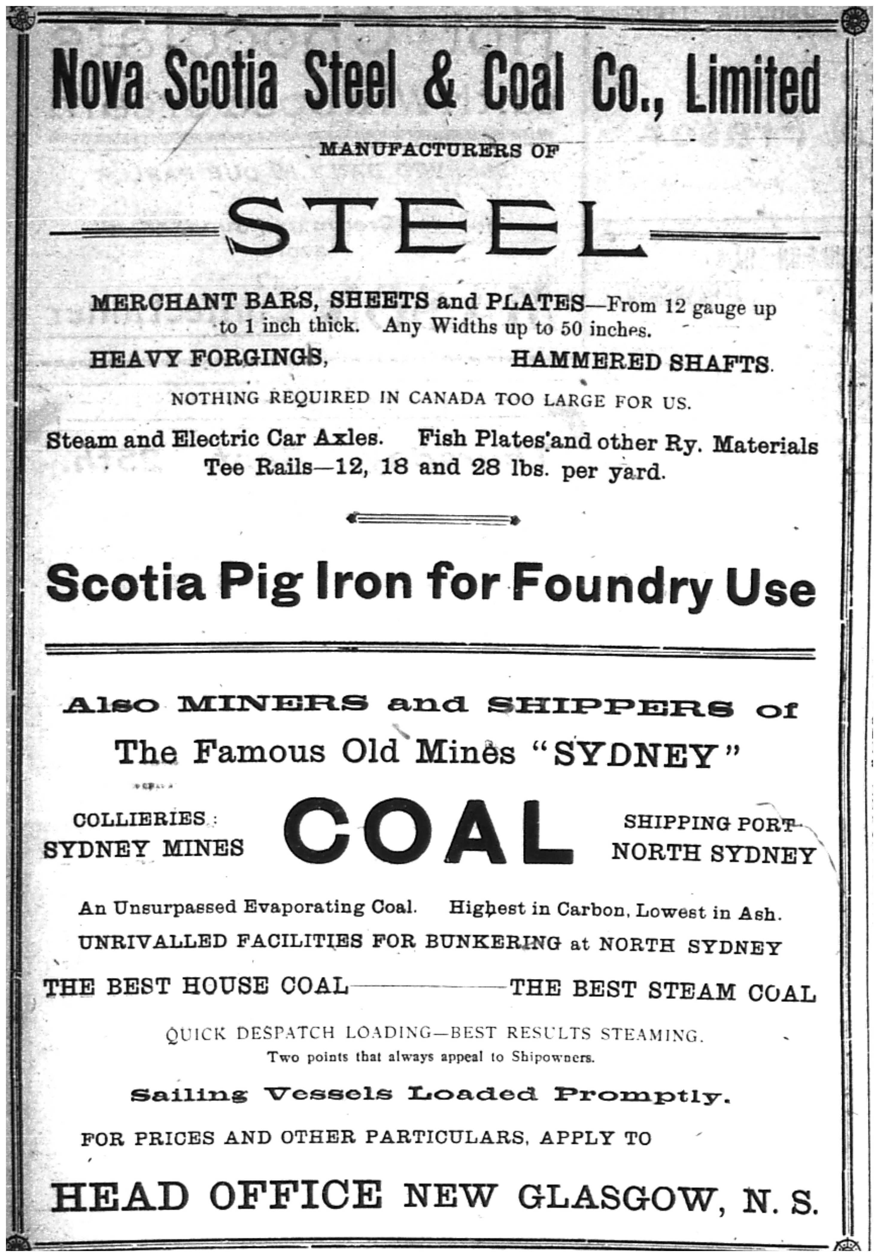 | Tags: | Eastern Chronicle, newspaper, advertisement, ad, Nova Scotia Steel & Coal Co., coal, steel, iron |