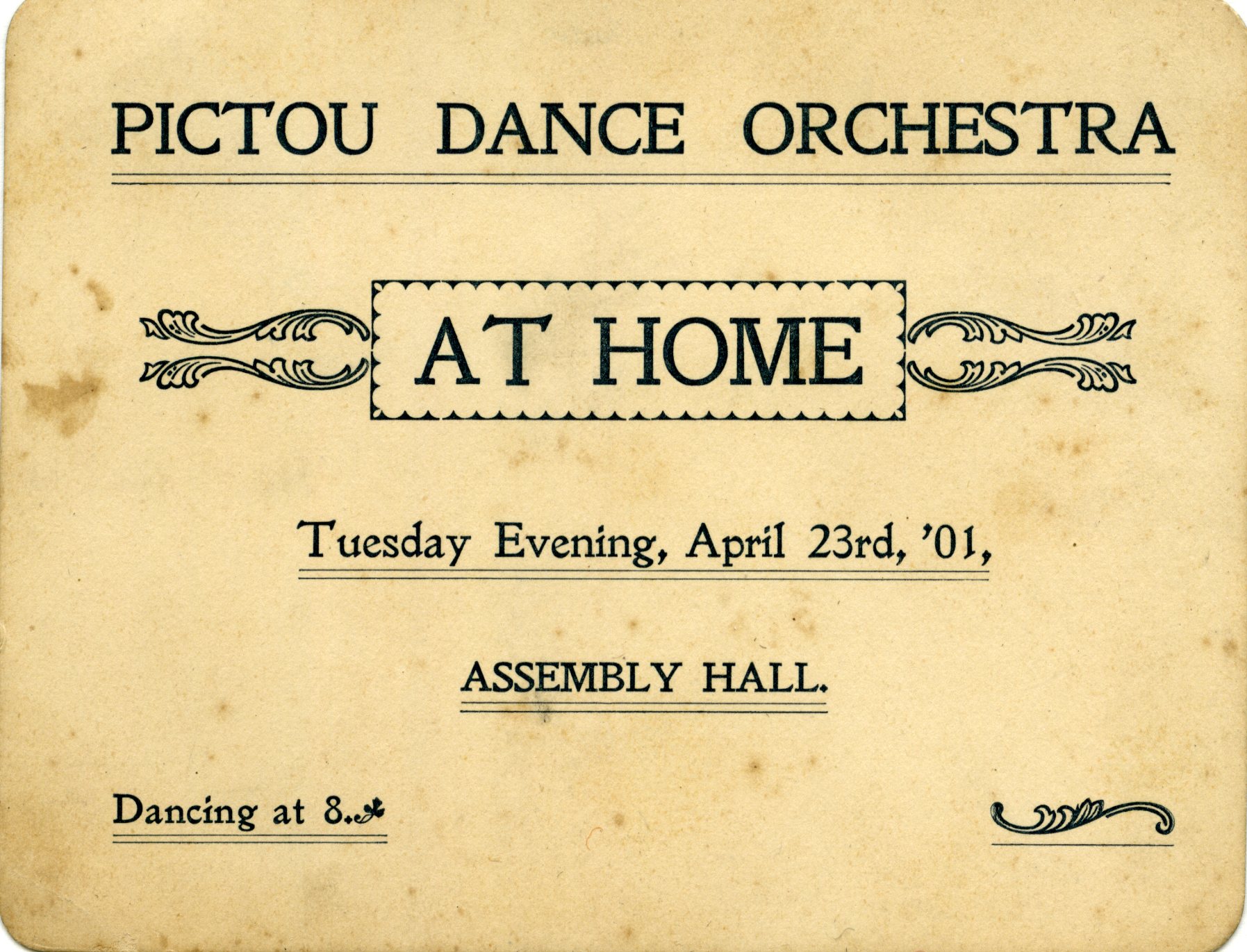 Invitation card for Pictou Dance Orchestra, April 23rd, 1901, at Assembly Hall