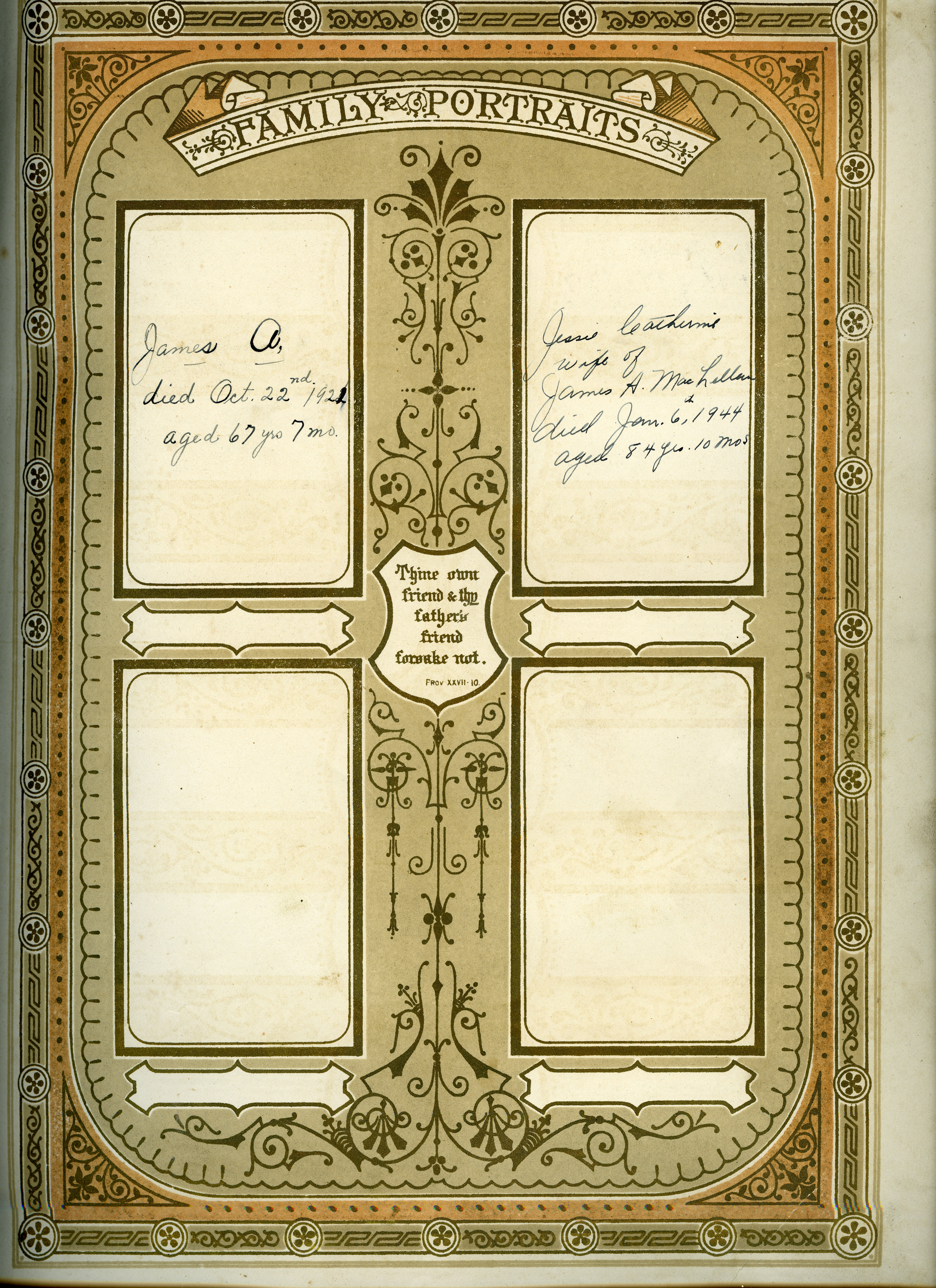 James A. died Oct. 22nd 1921 aged 67 yrs 7 mo Jessie Catherine wife of James A. MacLellan died Jan. 6th, 1944 aged 84 yrs. 10 mos