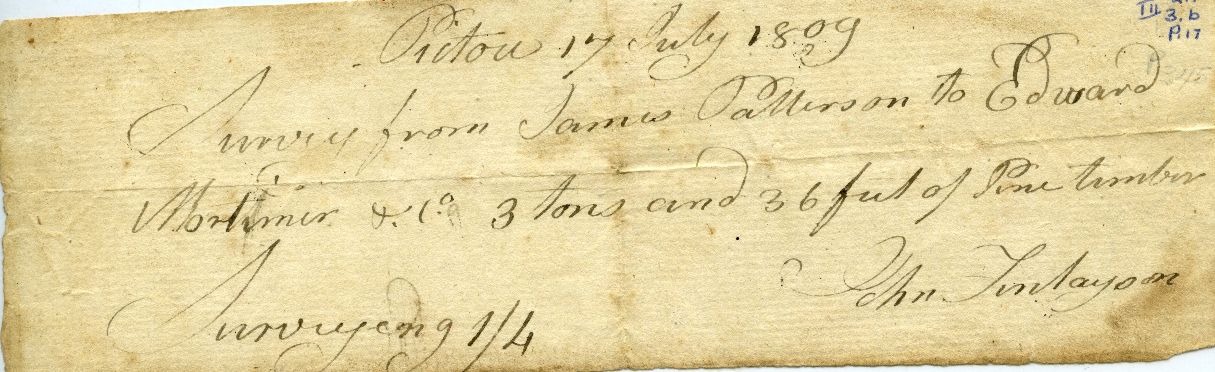 Survey from James Patterson to Edward Mortimer & Co. 3 tons and 36 feet of Pine timber
