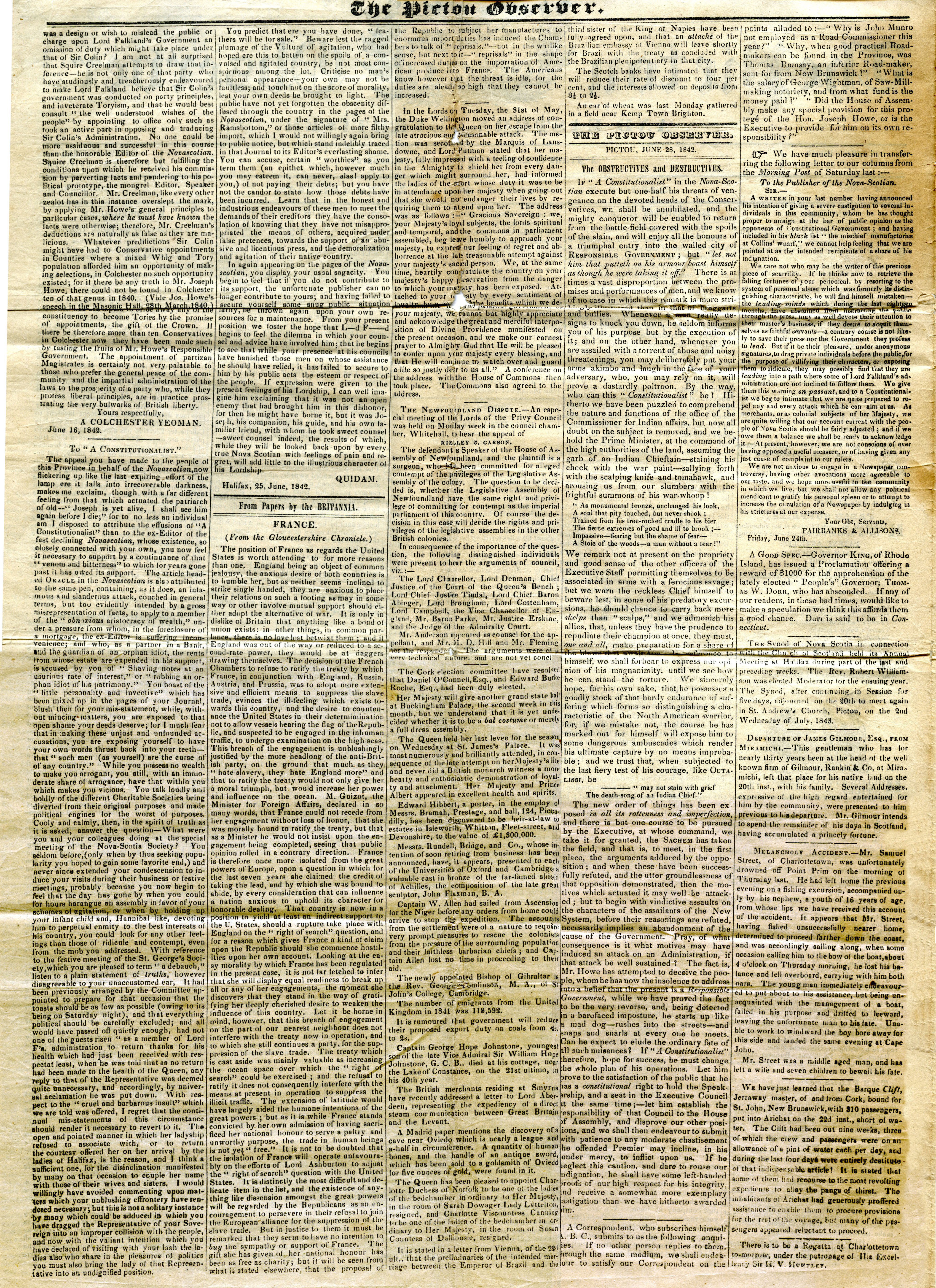 2nd page of The Pictou Observer published Tuesday, June 28, 1842.