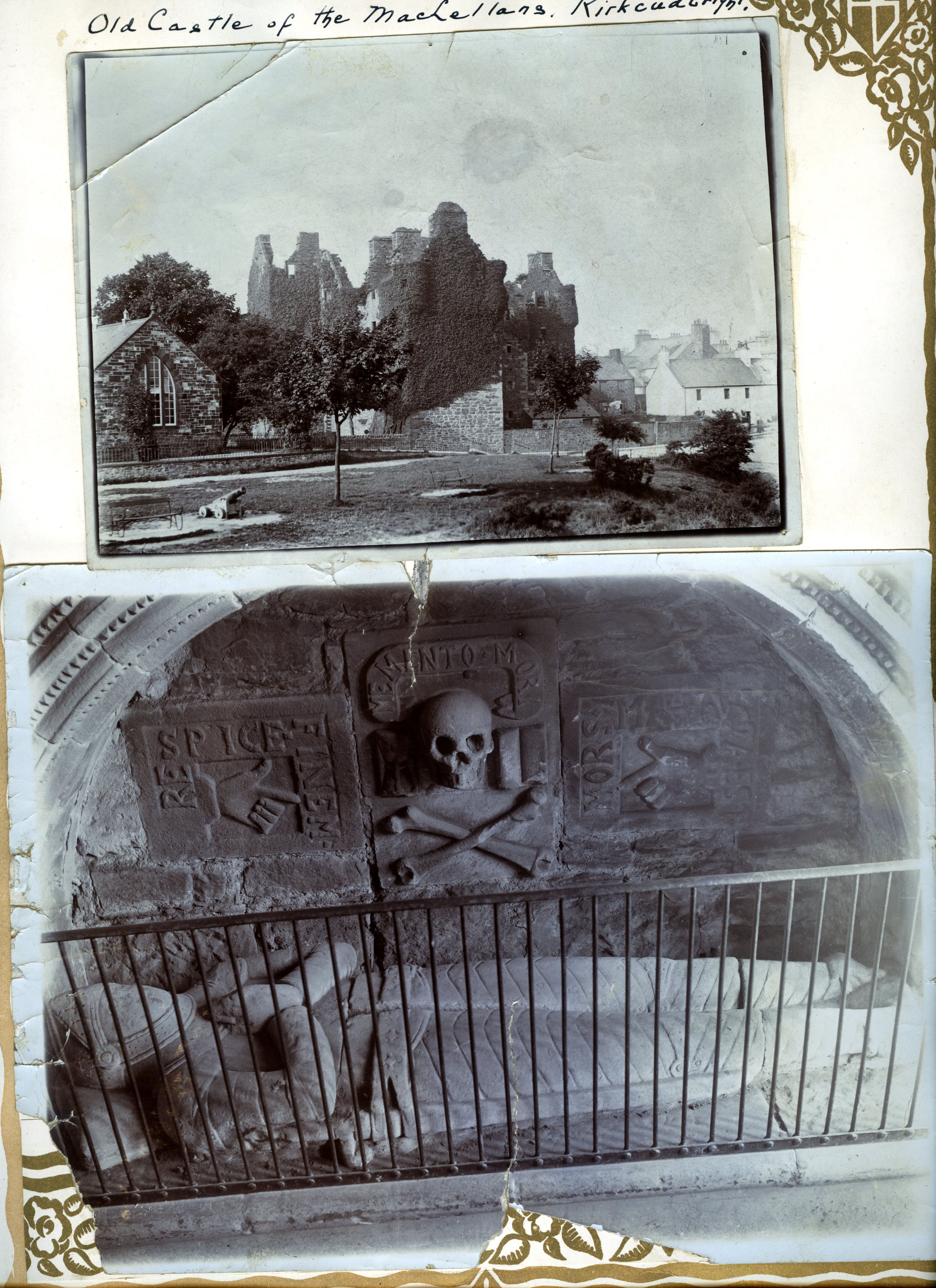 Part of the tomb in the old church by the castle. Views sent from Scotland by J. T. in July 1909.