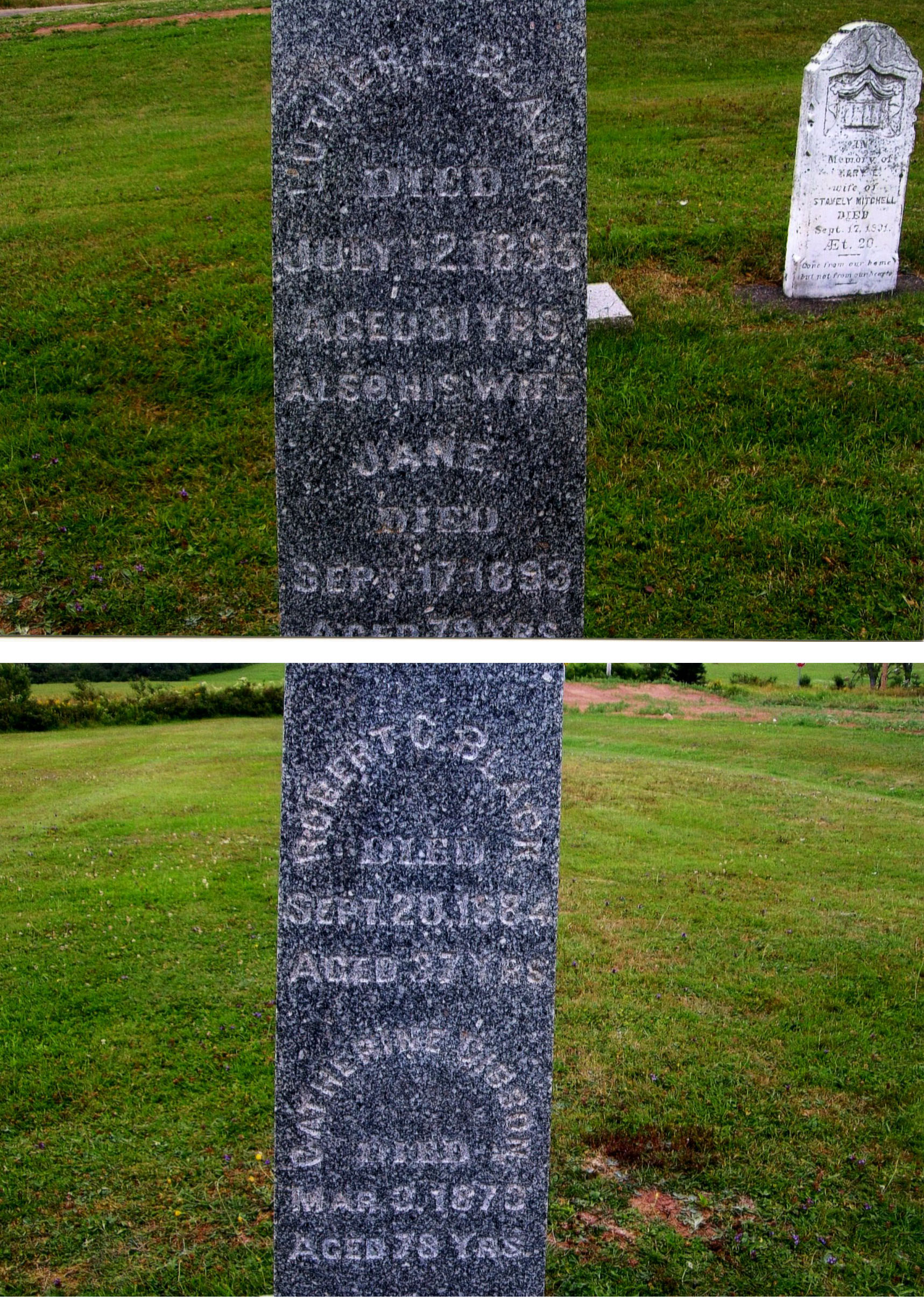 Robert G Black, Died, Sept 20, 1834?, Aged 37? yrs, Catherine Gibson, Died, Mar 3. 1873, Aged 78 yrs.