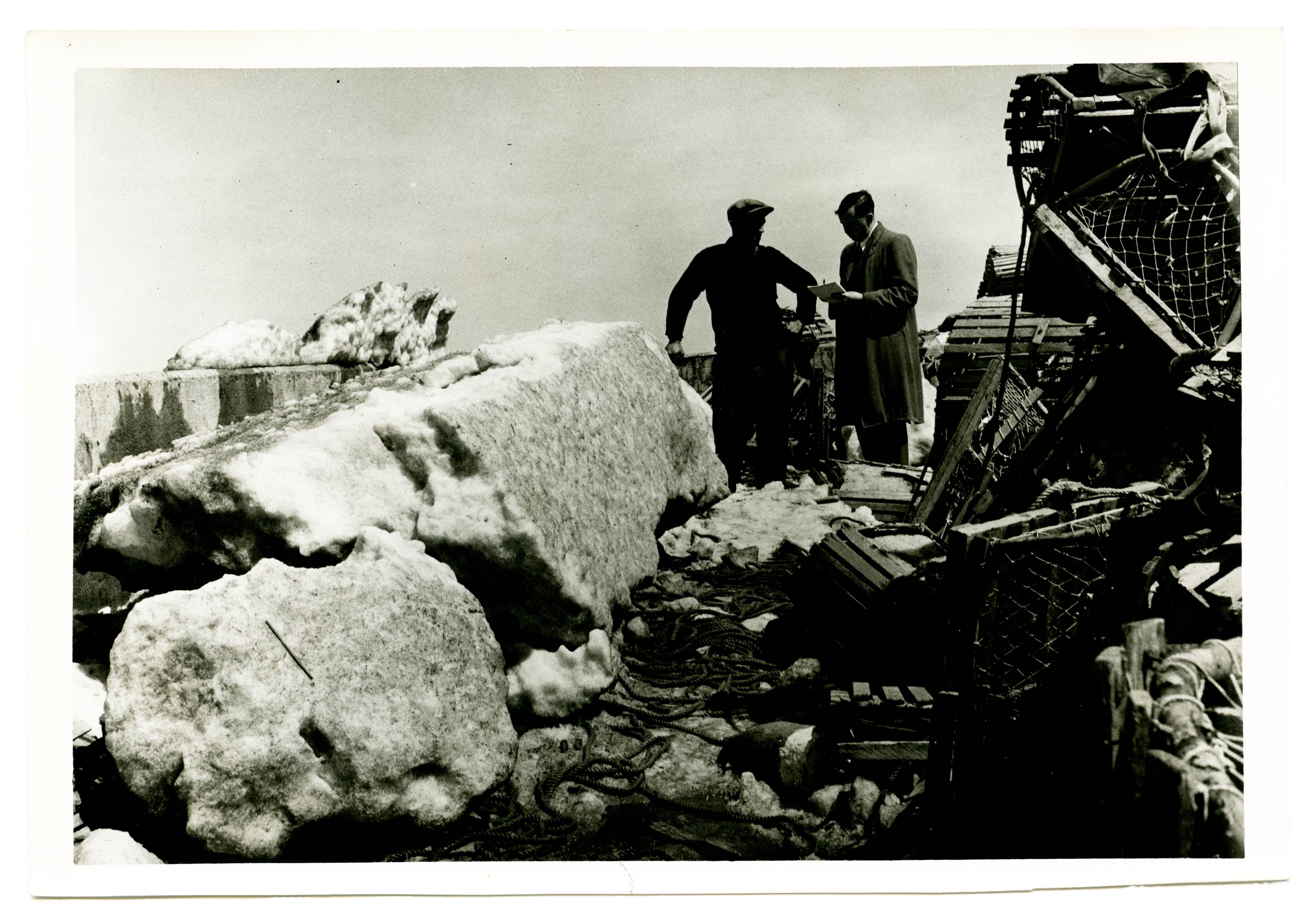 | Tags: | Don MacIsaac Photo Collection, fisherman, wooden traps, lobster traps, ice, Don MacIsaac, wharf |