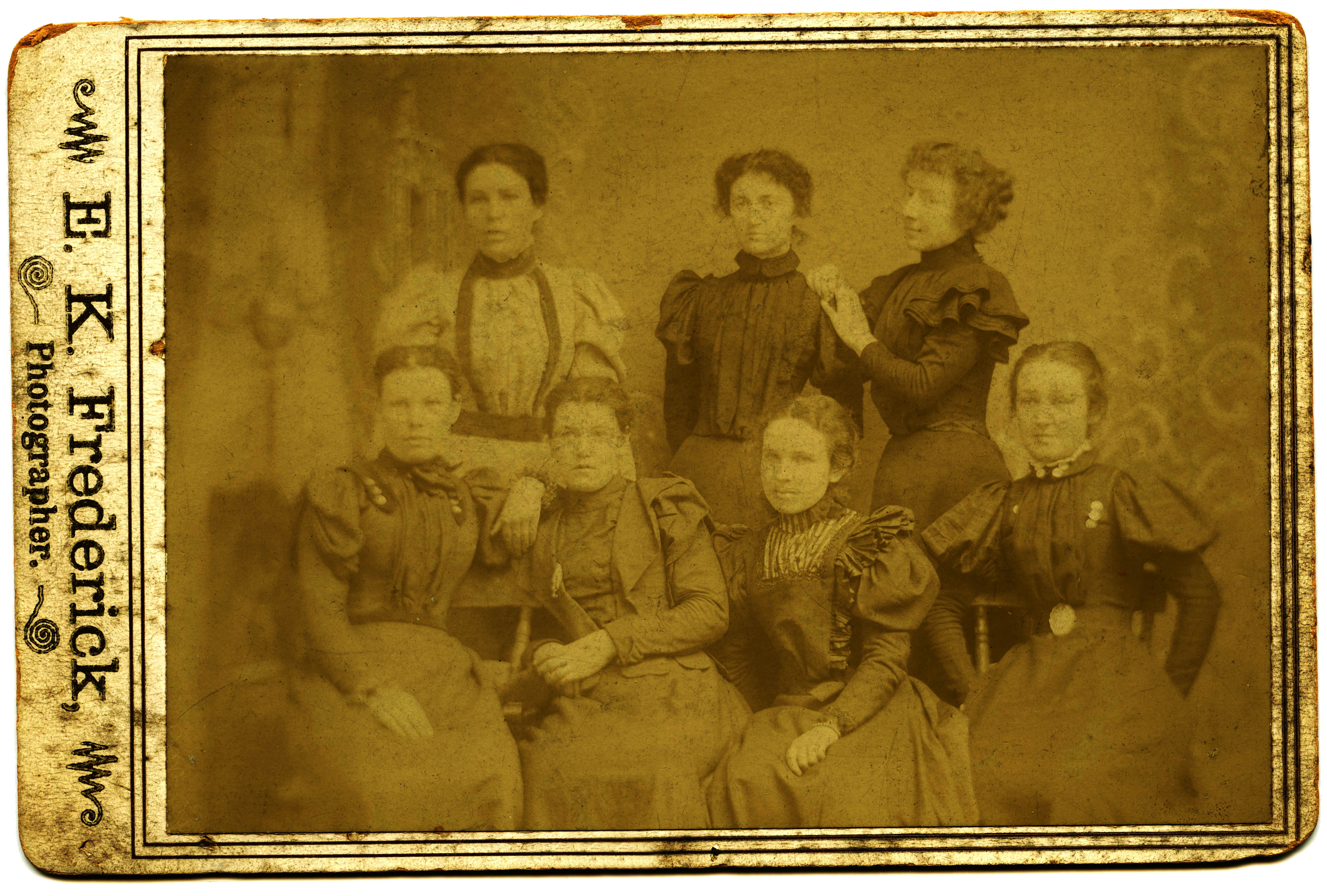 | Tags: | Don MacIsaac Photo Collection, E K Frederick photograph, cabinet card, c 1890s, seven ladies, Sis, Rose, Minnie, Bertha, Florence, Tene, Tine, Eliza |