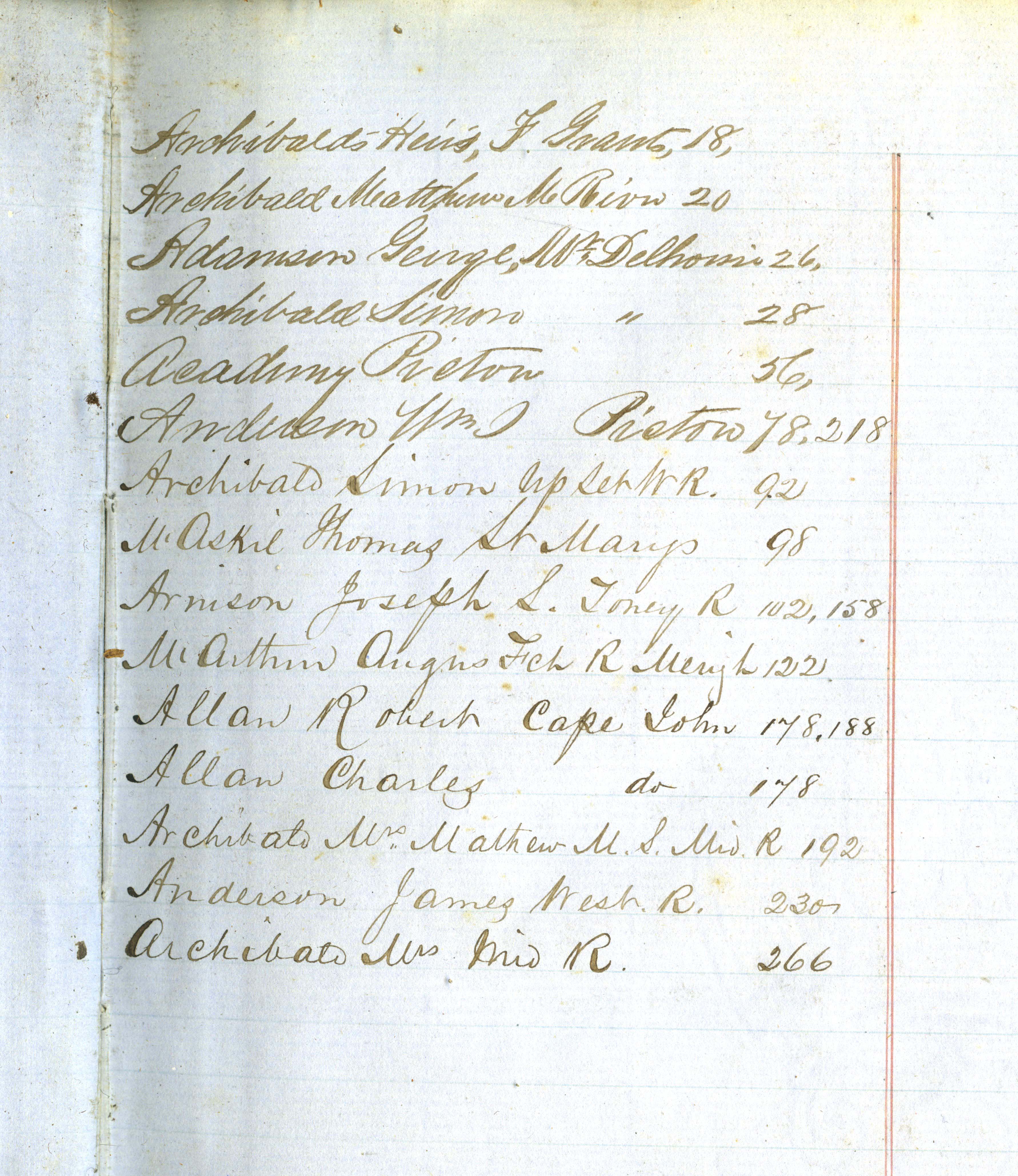 | Tags: | Archibald, Matthew Archibald, George Adamson, Simon Archibald, Pictou Academy, William Anderson, Thomas McAskil, Thomas MacAskil, Joseph Armison, Angus McArthur, Angus MacArthur, Robert Allan, Charles Allan, Mrs Mathew Archibald, James Anderson, Mrs Archibald, Middle River, West River, Cape John, Merigomish, French River, St. Marys, Mount Dalhousie, Dalhousie Mountain, roads, Pictou County roads, road maintenance, road damages |
