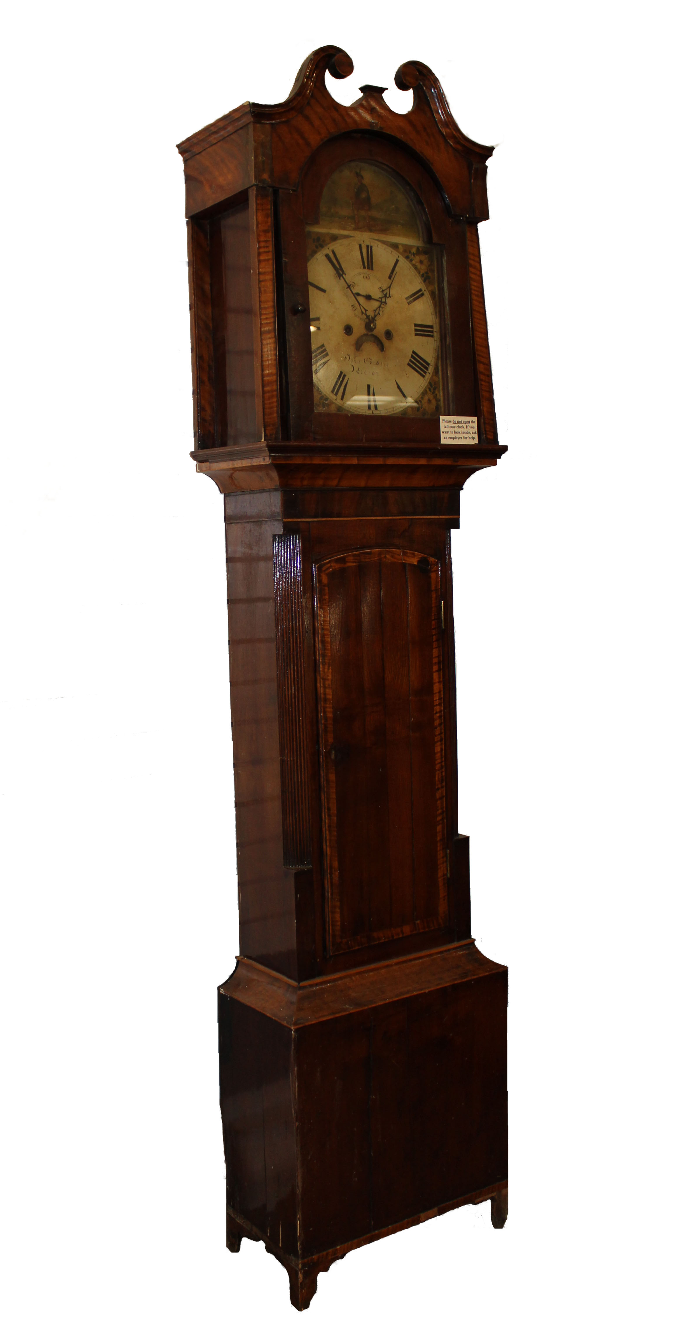 Tall case or long case clock made by John Geddie, Pictou. Name and location of maker printed on clock face.
