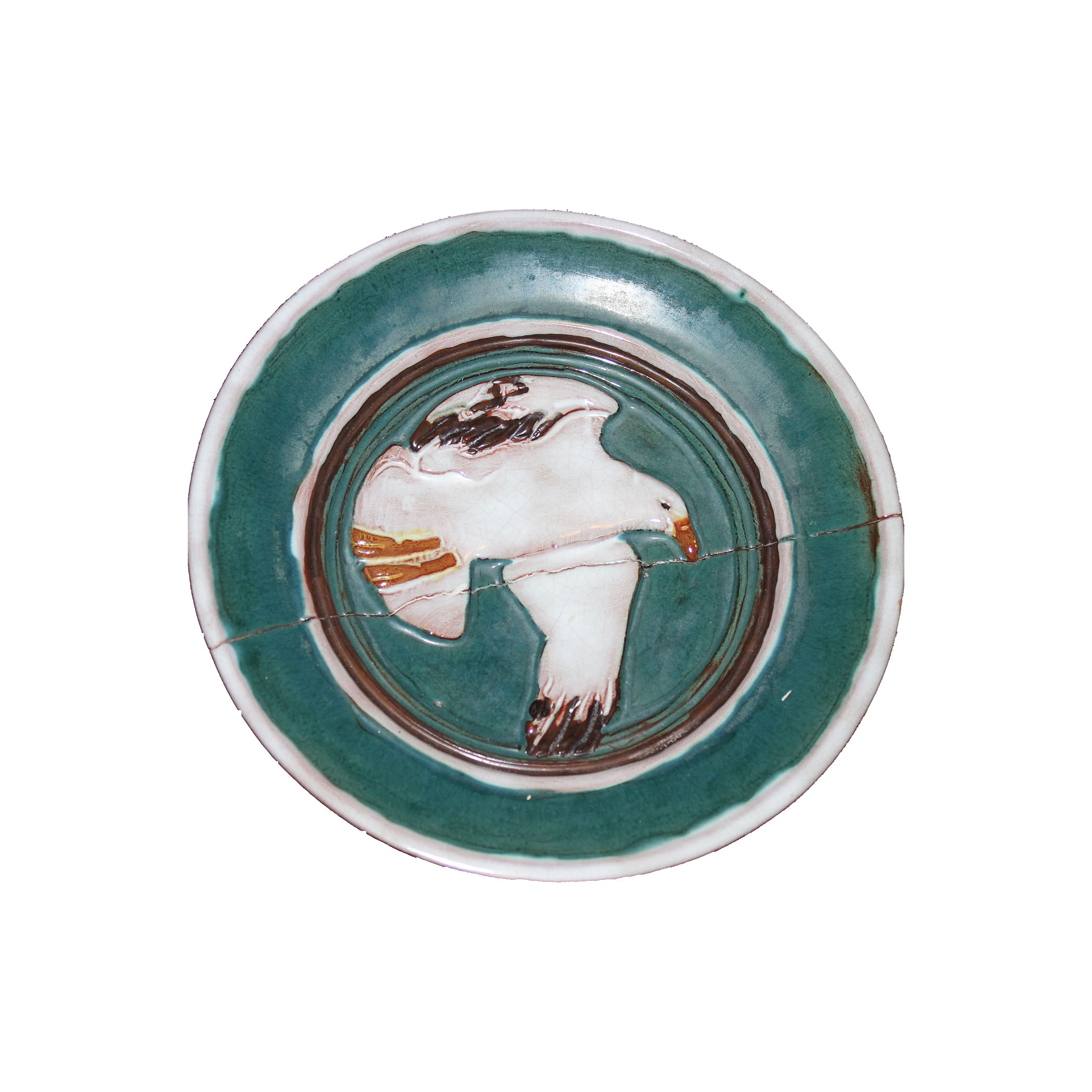 Decorative plate made by Nita DesBarres, self proclaimed "Mad Potter of Pictou" (ca. 1900 - 1976)