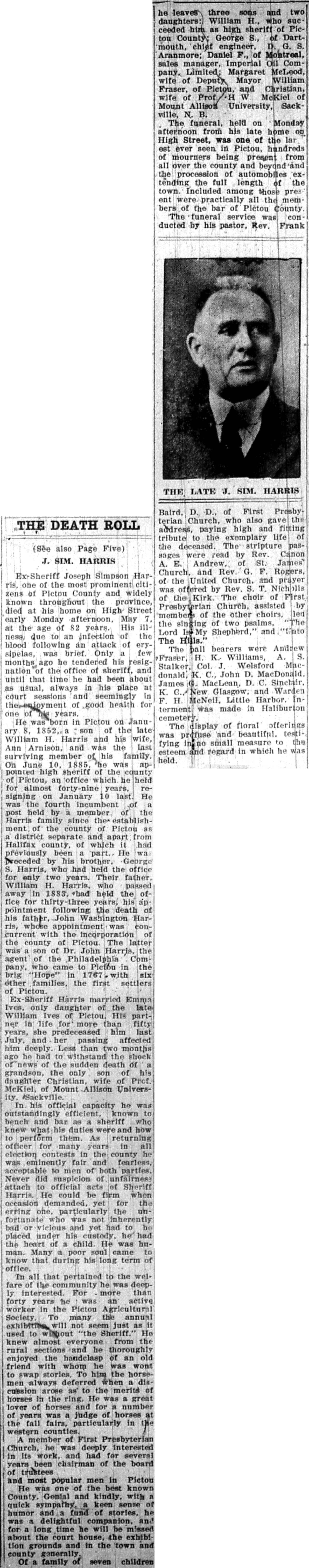 | Tags: | , Emma Ives, William Henry Harris, Ann Arnison, Pictou, sheriff, high sheriff, Joseph Simpson Harris, Ann Arnison Harris |