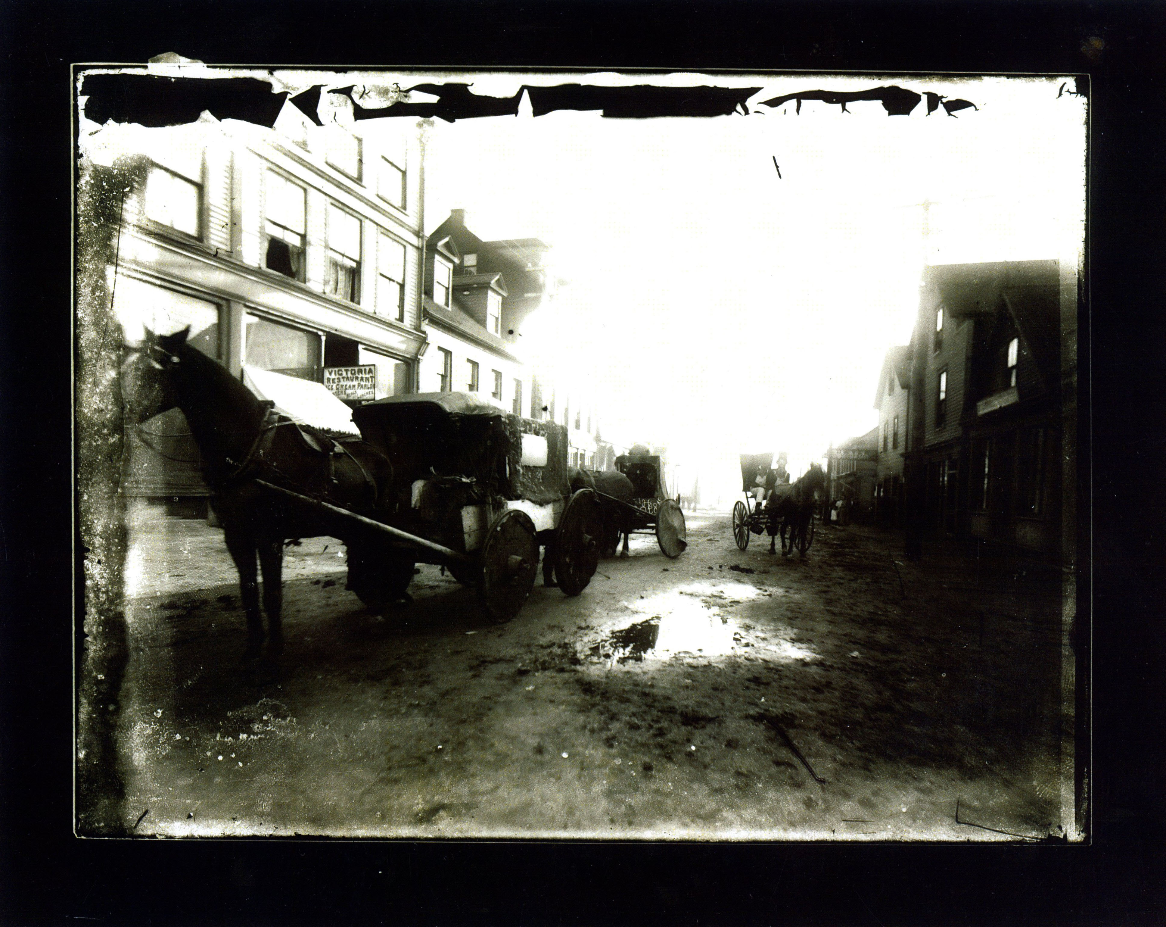 | Tags: | Front Street, Pictou, Pictou town, buggy, wagon, horse, Dwyer, Victoria Restaurant, ice cream parlor, c 1880, 1800s, parade, historic Pictou |