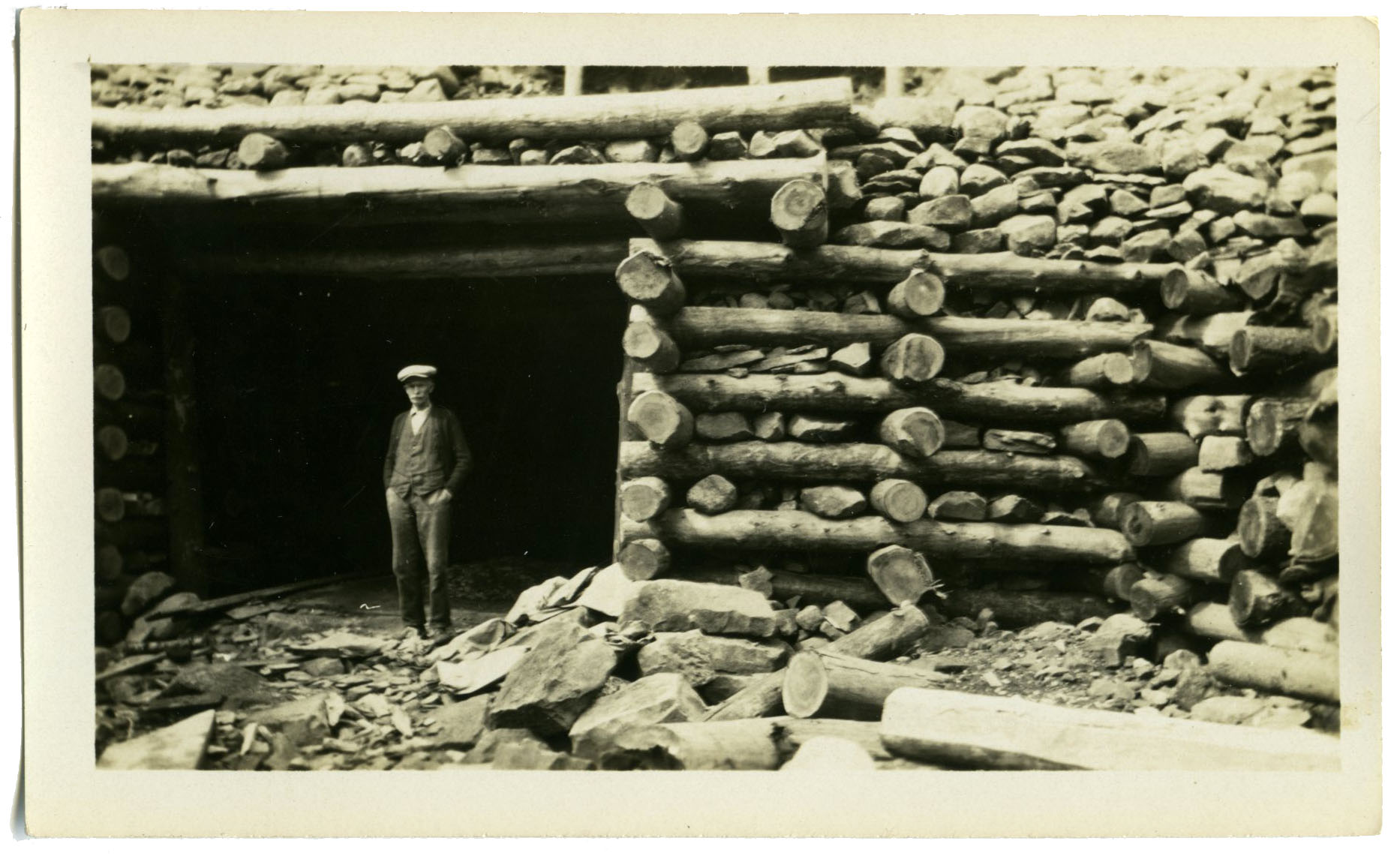 | Tags: | James Leithead, mine, tunnel, wood, stone, 1930s, logs, drift mine, 1920, 1930 |
