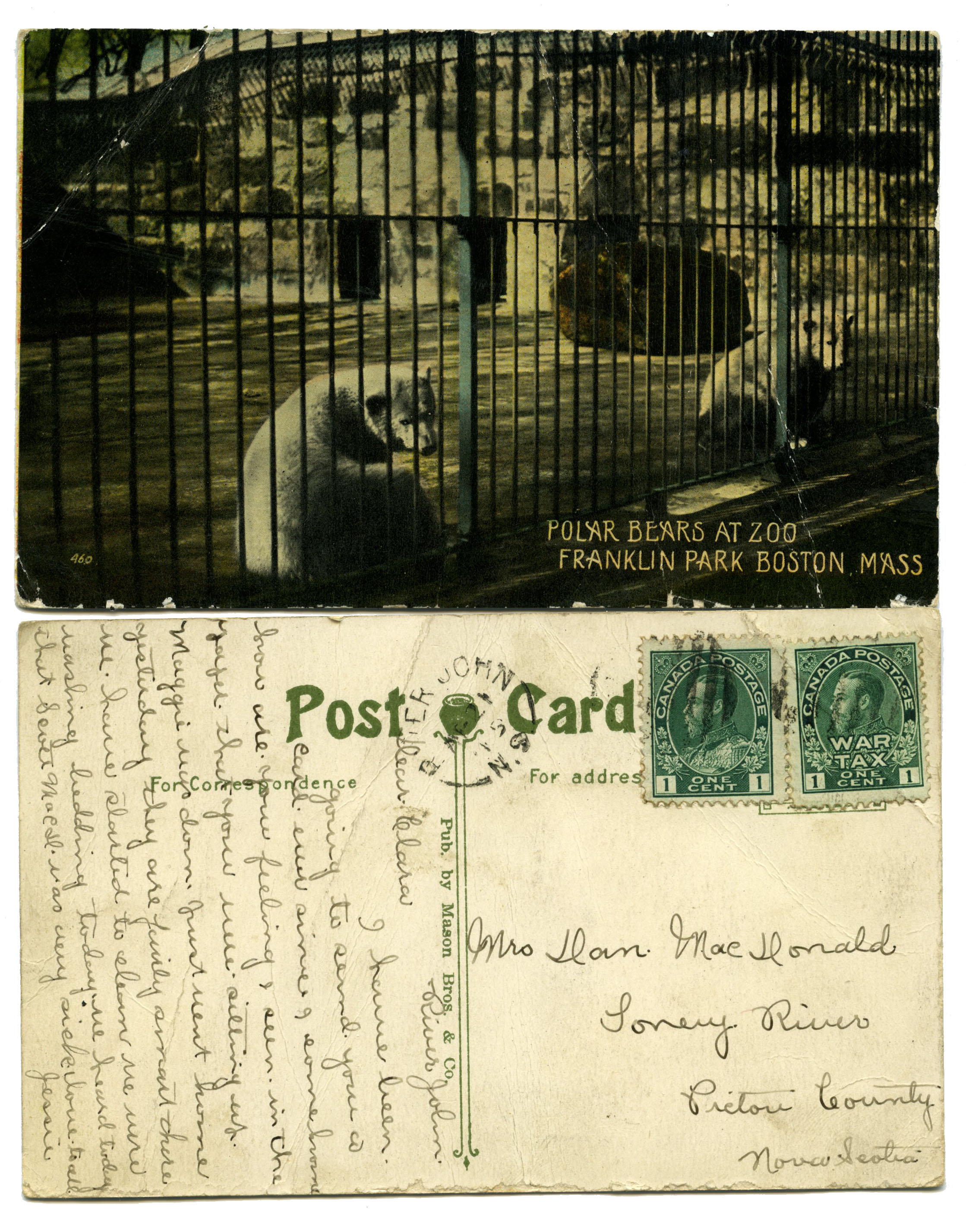 | Tags: | Mrs Dan MacDonald, Toney River, Pictou County, Nova Scotia, River John, Scott MacDonald, post card, polar bears, Franklin Park Zoo, Boston, Massachusetts, Clara MacDonald, Daniel MacDonald, A Daniel MacDonald, Clara Clark MacDonald, Poplar Hill, Daniel Alexander MacDonald, Alexander Daniel MacDonald |