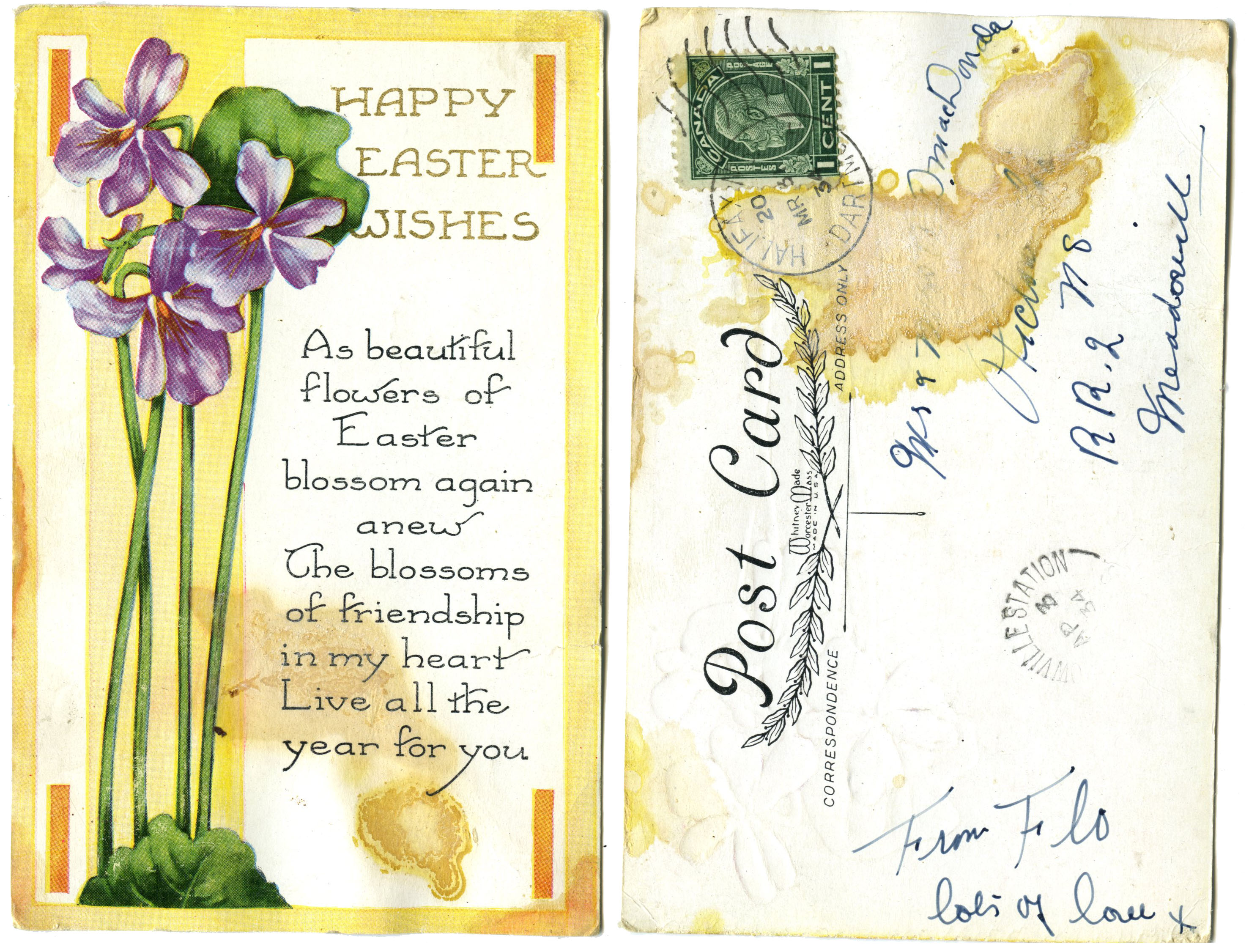 | Tags: | Clara MacDonald, Daniel MacDonald, A D MacDonald, Mrs Dan MacDonald, Meadowville, Pictou, Meadowville Station, Easter card, A Daniel MacDonald, Clara Clark MacDonald, Poplar Hill, Alexander Daniel MacDonald, Daniel A MacDonald |