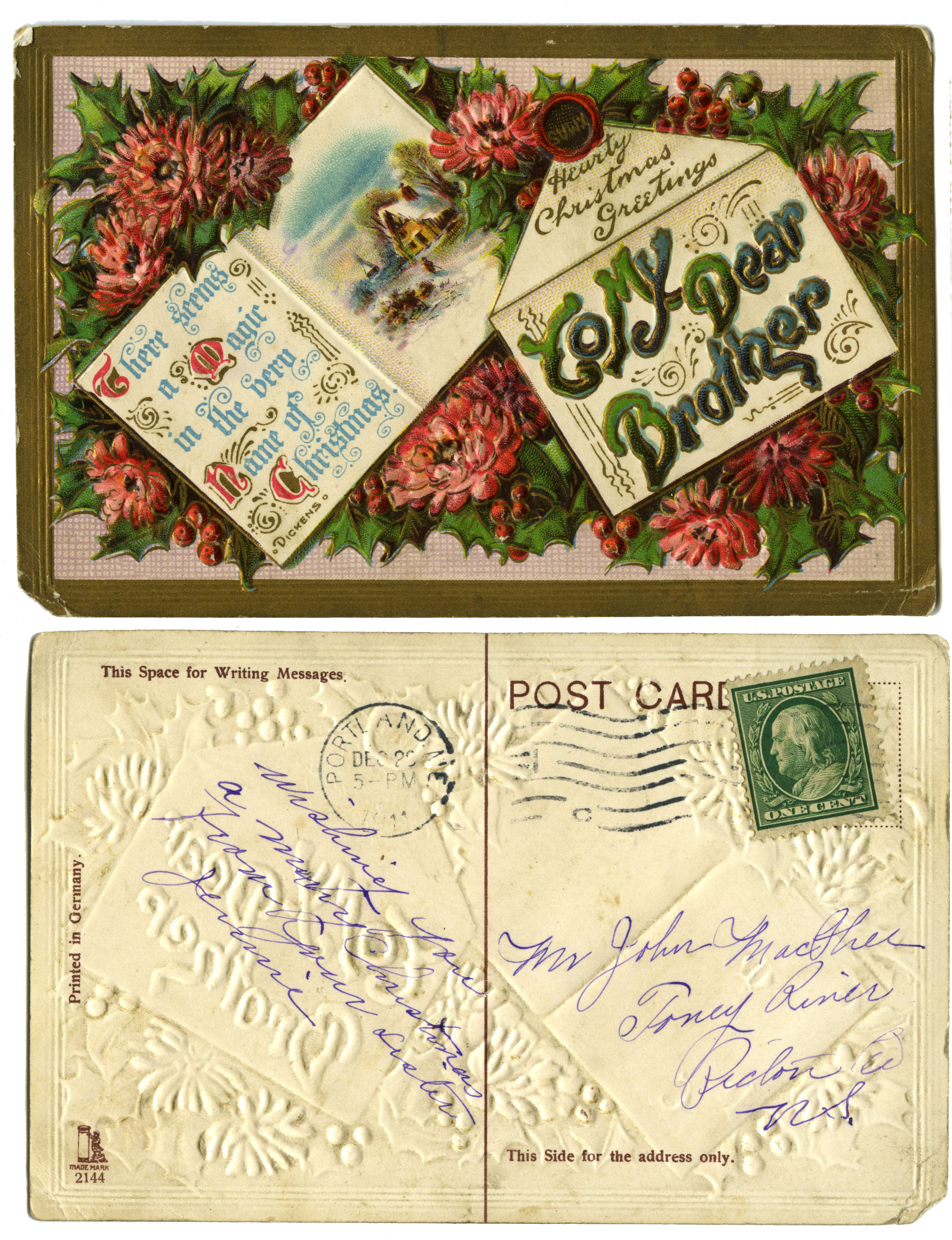 Postmarked Portland, Maine, December 2-, 1911