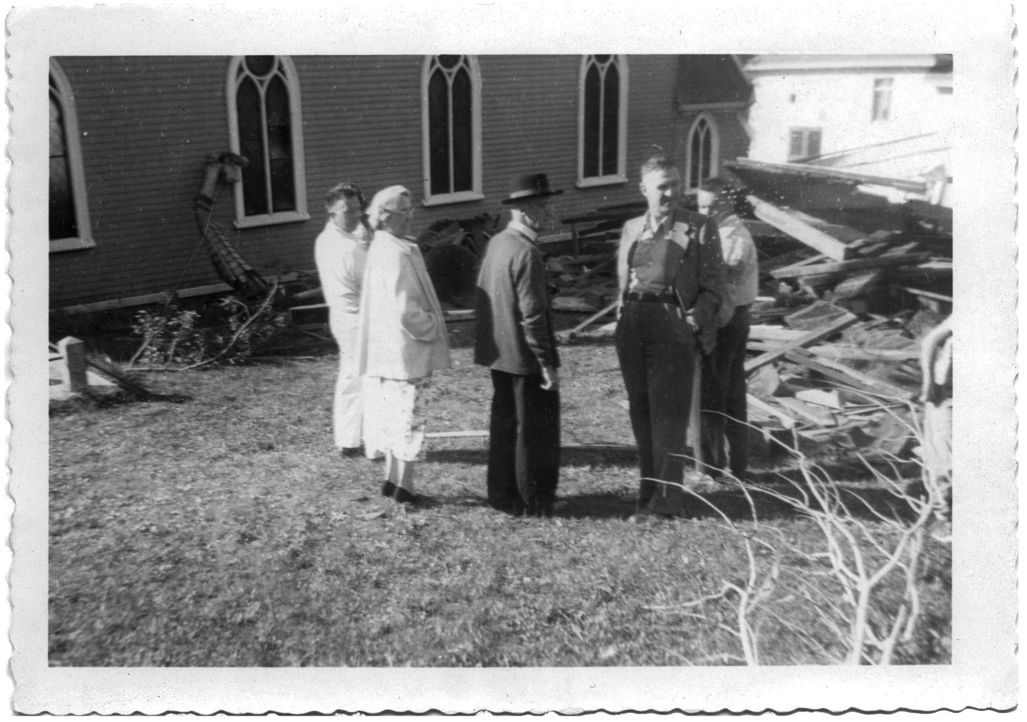 Collapsed steeple of the St. James Church after hurricane Edna passed through Pictou in 1954
