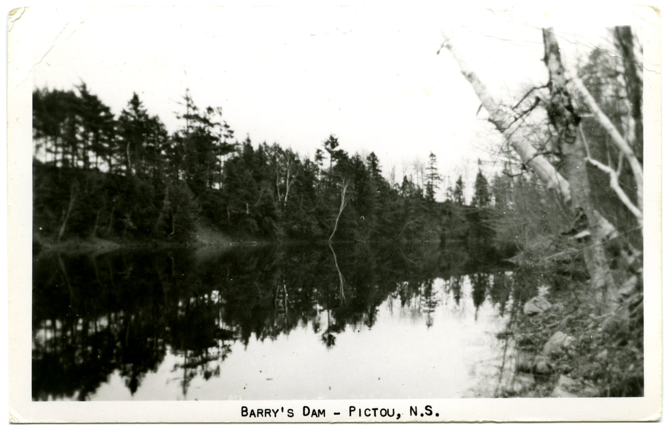 Photo postcard of Barry's Dam - Pictou, N. S.