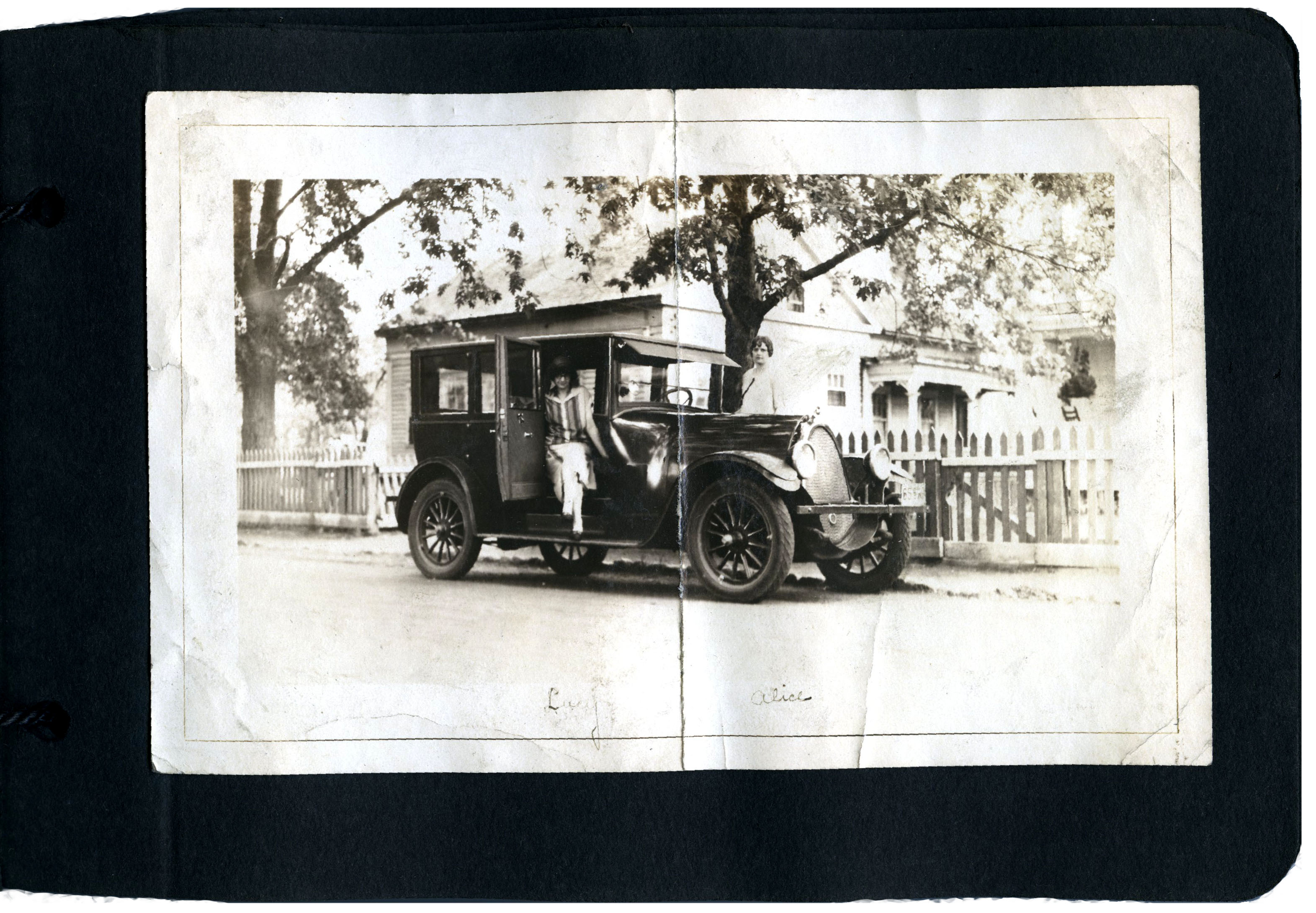 Lucy and Alice with a c1920s automobile