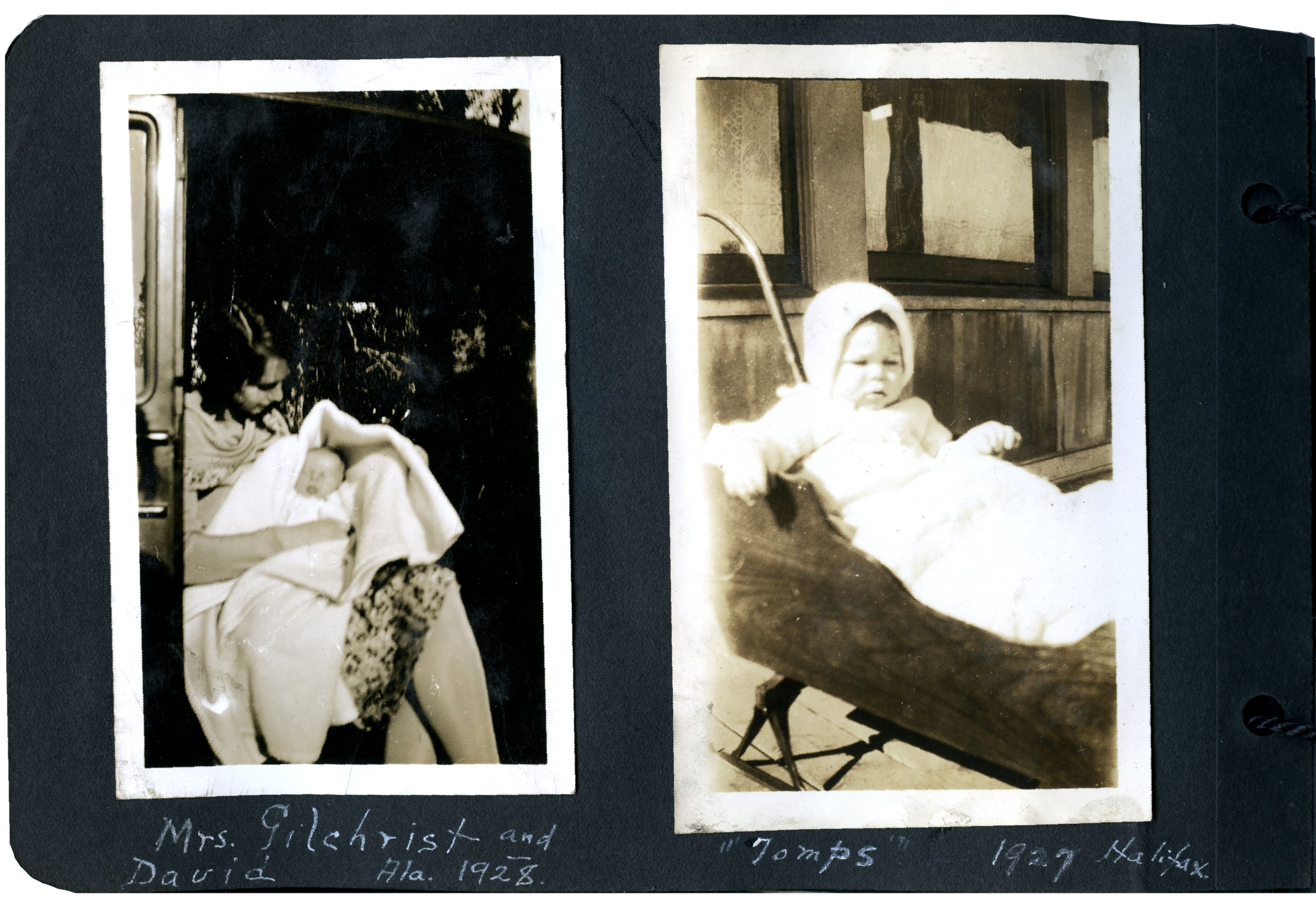 Written below photos: Mrs. Gilchrist and David, Ala. 1928 and "Thomps" 1927 Halifax